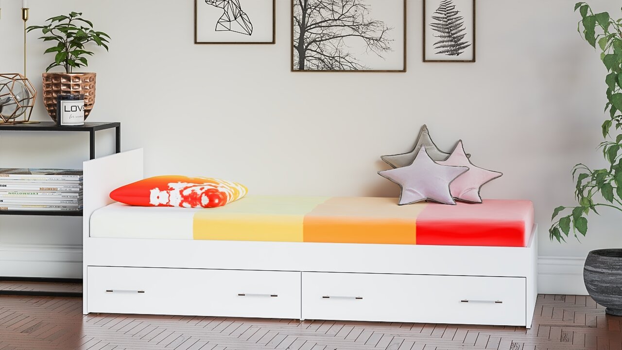 СохранитьКровать с ящиками Мори 900 цвет белый, ШхГхВ 93,5х203,5х70 см, сп. м. 900х2000 мм, без матраса, основание есть интересное: