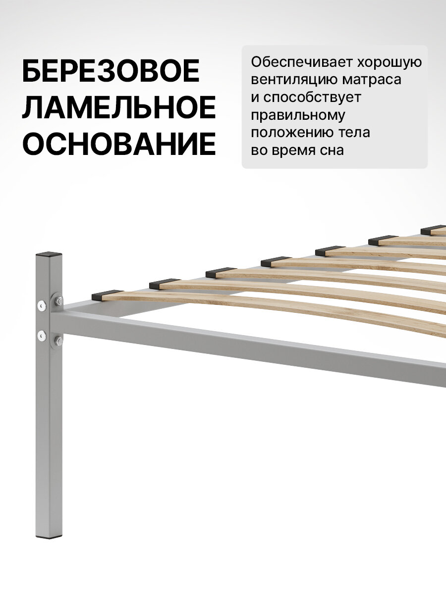 Купить Кровать металлическая Металика Г3 90х200 серая с держателями для матраса и доп. опорами