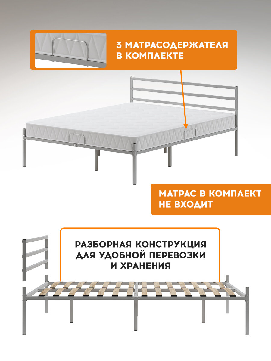 СохранитьКровать металлическая Металика Г3 160х190 серая с держателями для матраса и доп. опорами интересное: