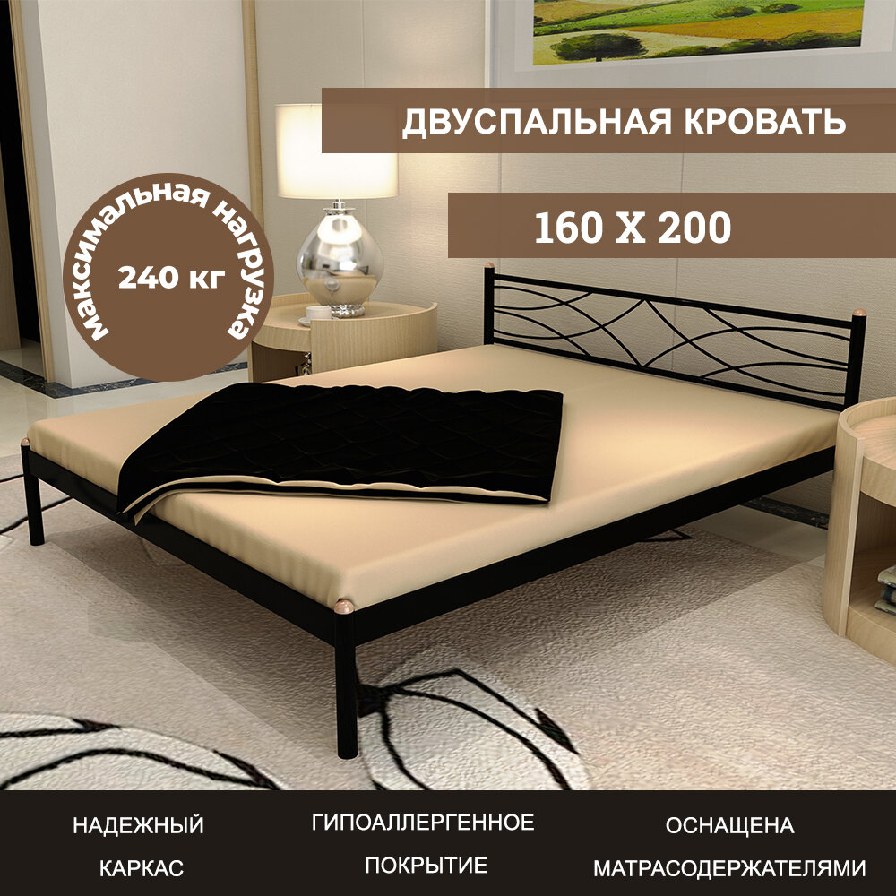Кровать Экзотика (160х200/цвет Черный/ металлическое основание)