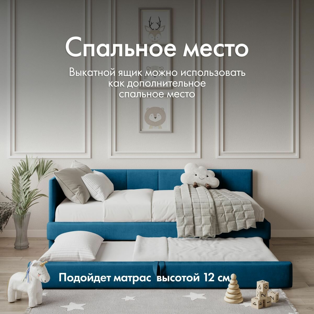 СохранитьДетский диван кровать Челси Лайт 90х200 см морская волна с матрасом, чехлом и выкатным ящиком Кровать детская от 3х лет интересное: