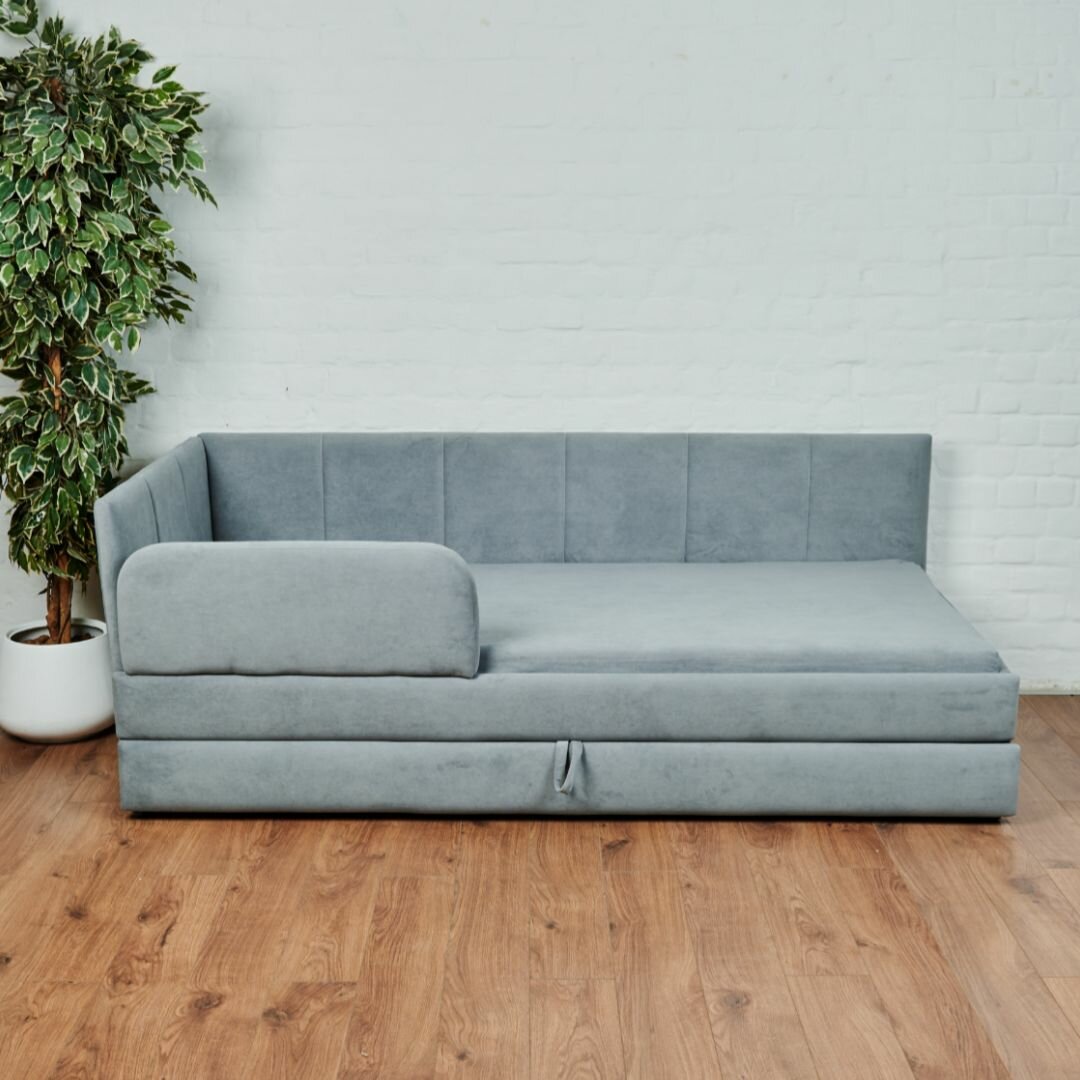 Детский диван кровать Челси Лайт 160х80 см серый с матрасом, чехлом, выкатным ящиком и бортиком Кровать детская от 3х лет