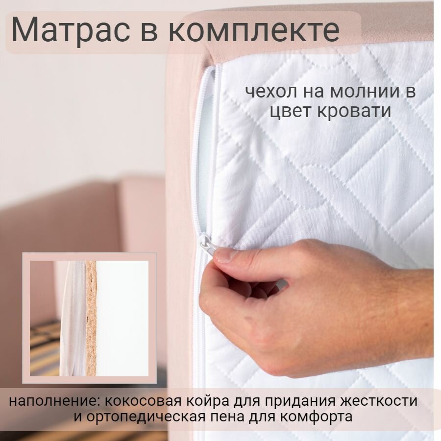 СохранитьДетский диван кровать Челси Лайт 160х80 см розовый с матрасом, чехлом и выкатным ящиком Кровать детская от 3х лет интересное: