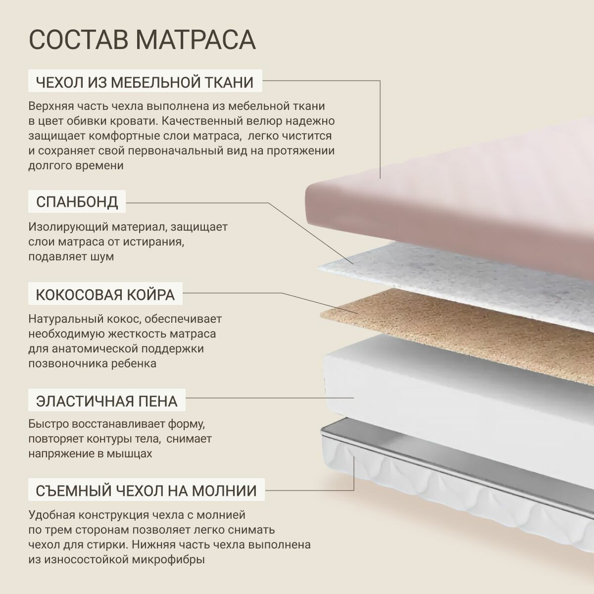 Детский диван кровать Челси Лайт 160х80 см бежевый с матрасом, чехлом и выкатным ящиком Кровать детская от 3х лет
