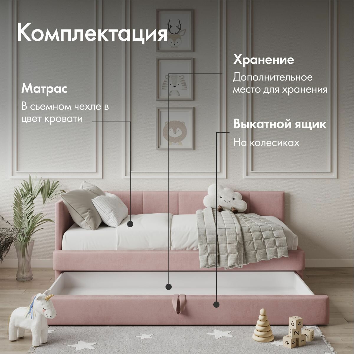 Детский диван кровать Челси Лайт 180х80 см розовый с матрасом, чехлом и выкатным ящиком Кровать детская от 3х лет
