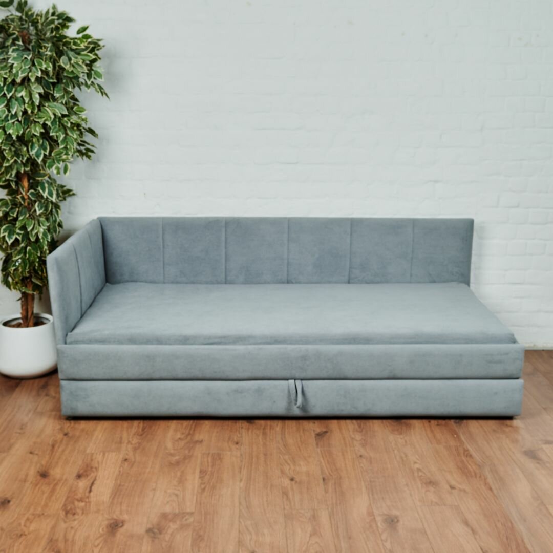Детский диван кровать Челси Лайт 90х200 см серый с матрасом, чехлом, выкатным ящиком и бортиком Кровать детская от 3х лет