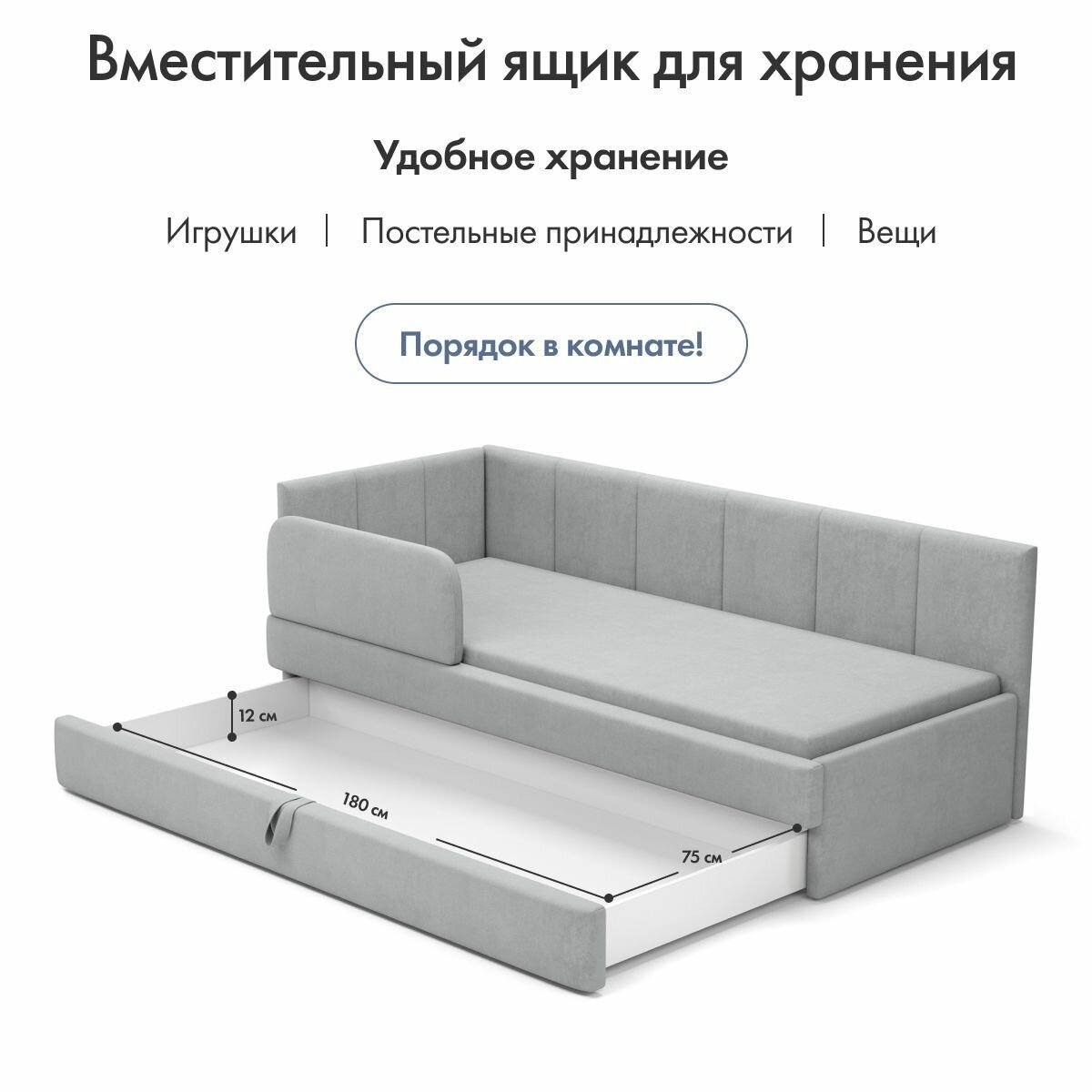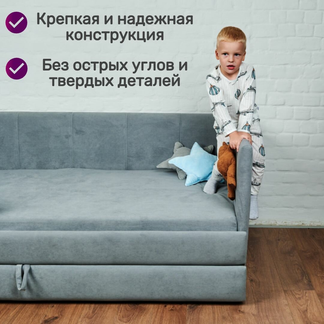 СохранитьДетский диван кровать Челси Лайт 180х80 см серый с матрасом, чехлом и выкатным ящиком Кровать детская от 3х лет интересное: