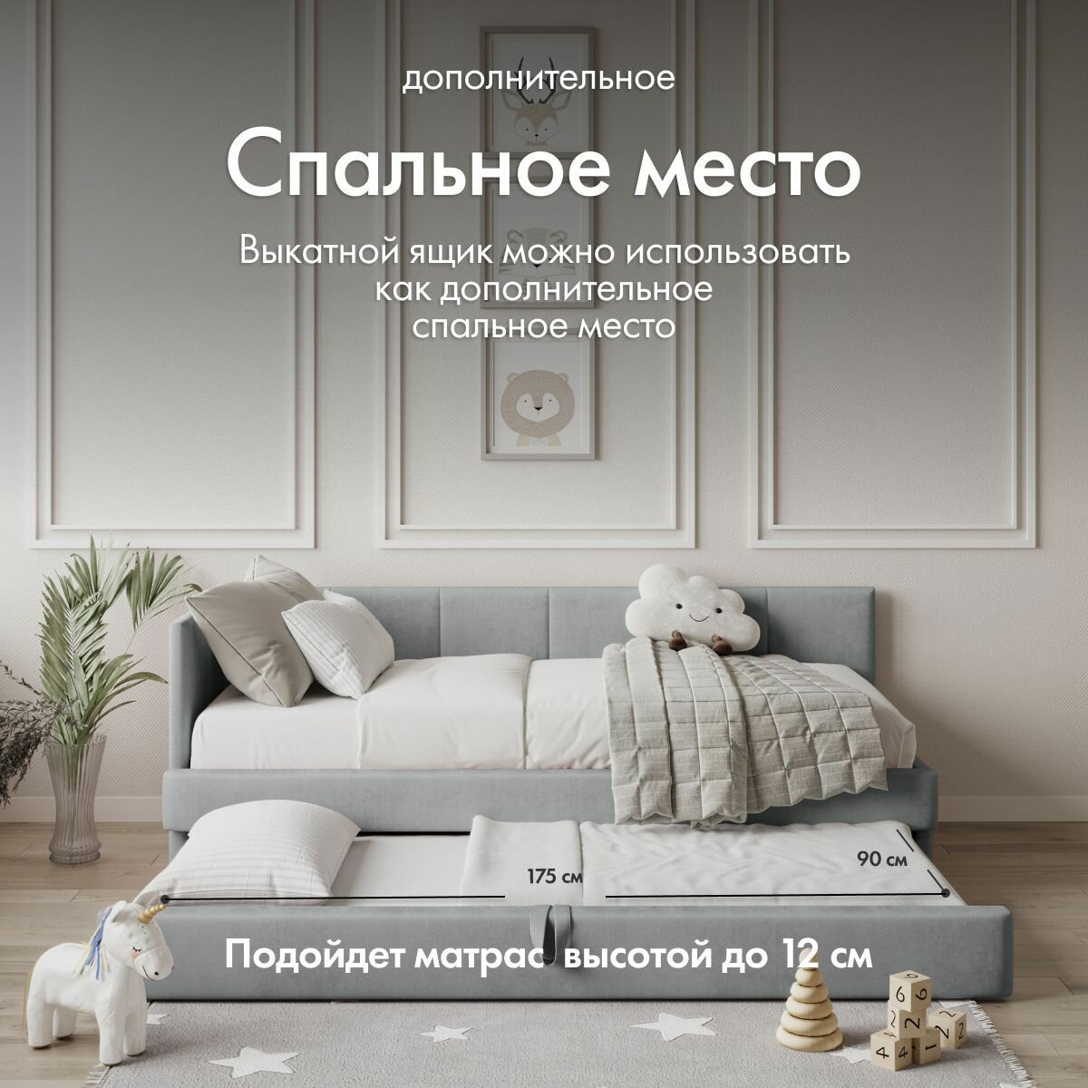 СохранитьДетский диван кровать Челси Лайт 180х90 см серый с матрасом, чехлом и выкатным ящиком Кровать детская от 3х лет интересное: