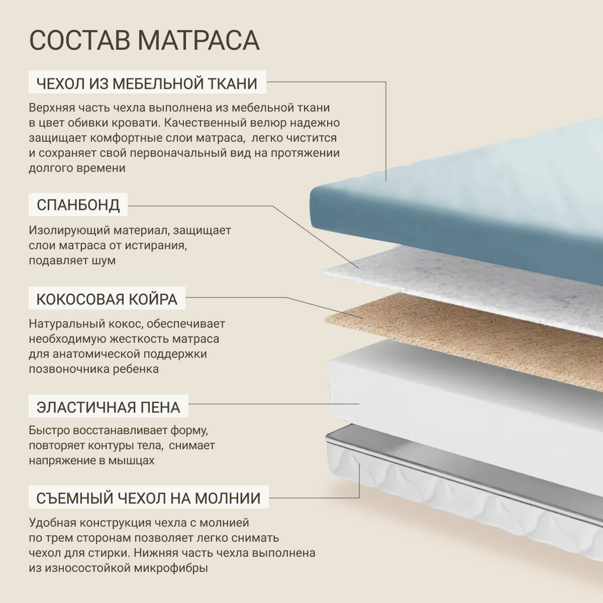 Детский диван кровать Челси Лайт 90х200 см бежевый с матрасом, чехлом и выкатным ящиком Кровать детская от 3х лет