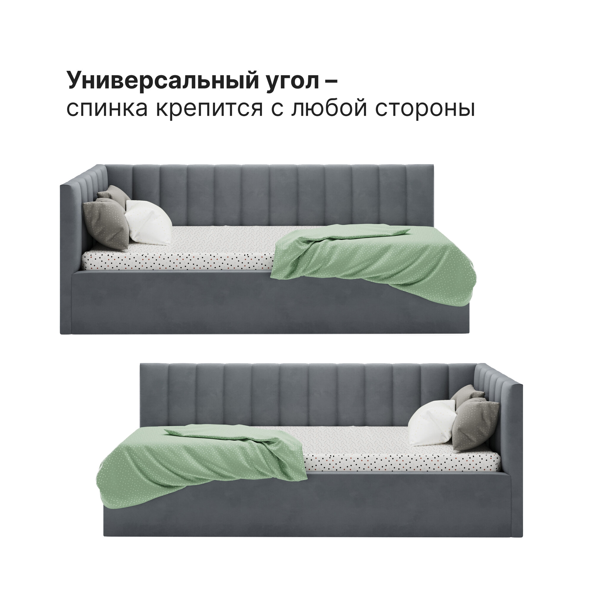 Кровать 90х200 + матрас, c подъемным механизмом и ящиком для белья Mia, велюр, темно-серый интересное: