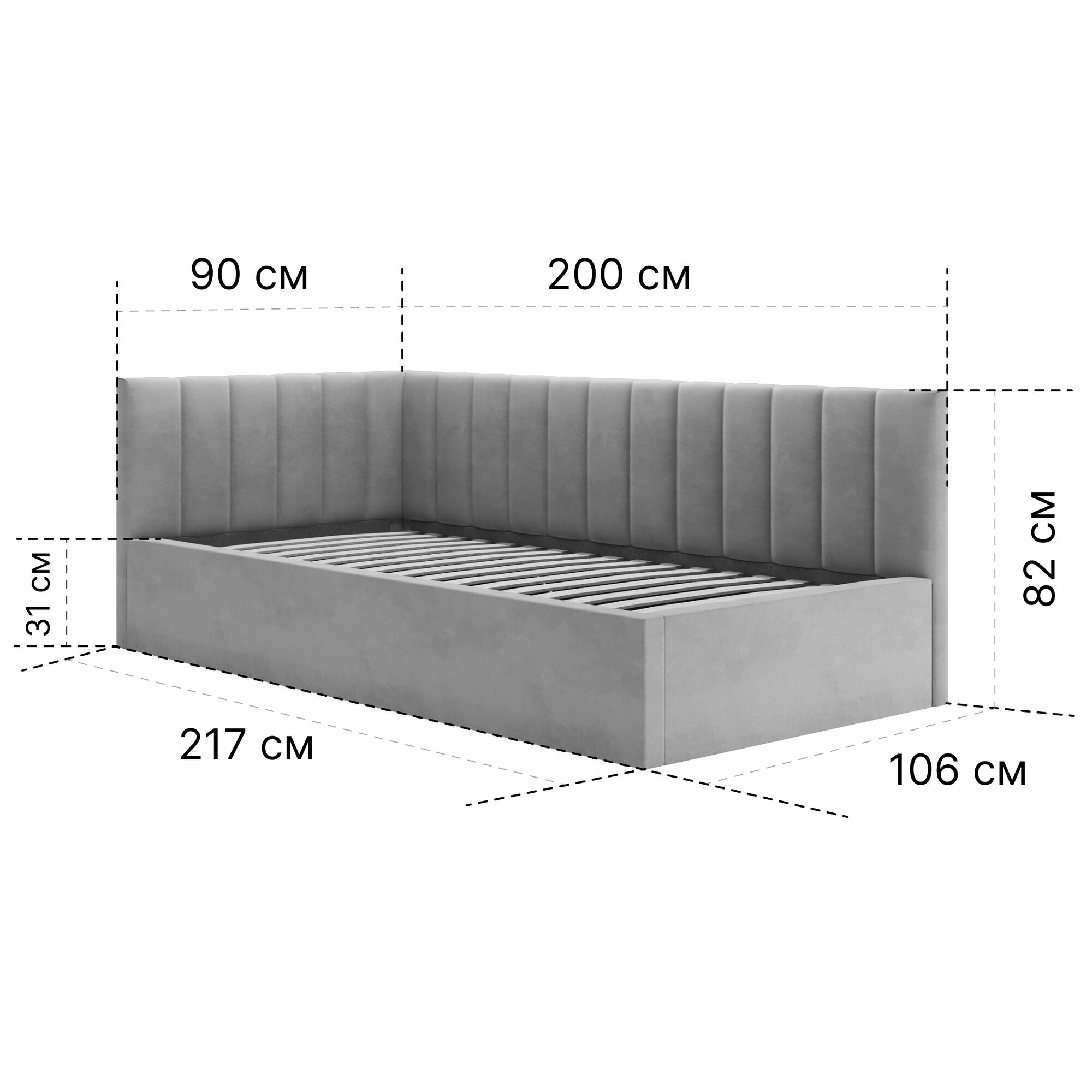 Кровать 90х200 + матрас, c подъемным механизмом и ящиком для белья Mia, велюр, темно-серый