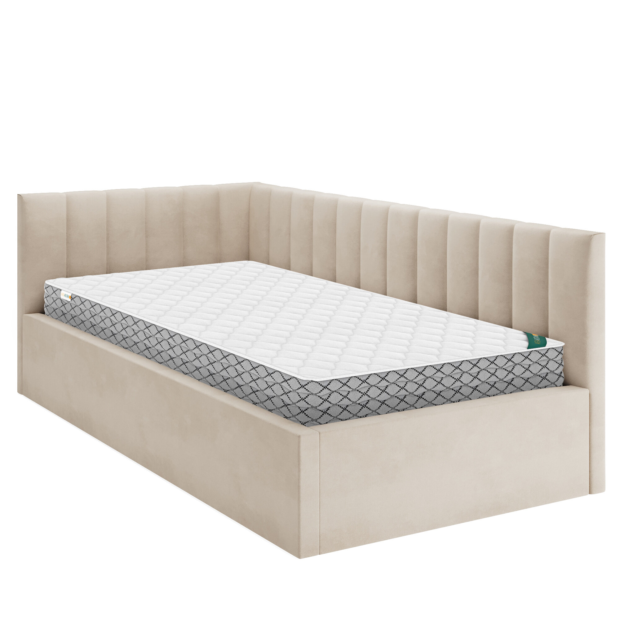 Кровать 90х200 + матрас, c подъемным механизмом и ящиком для белья Mia, велюр, бежевый интересное: