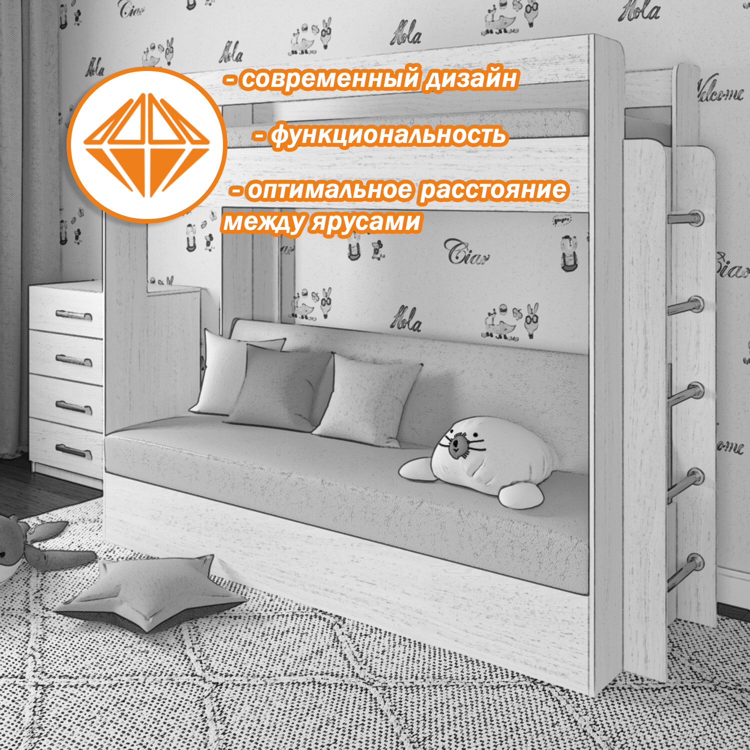 Кровать двухъярусная с диваном Есэндвич Лаворо (Анкор светлый/Savana Latte)