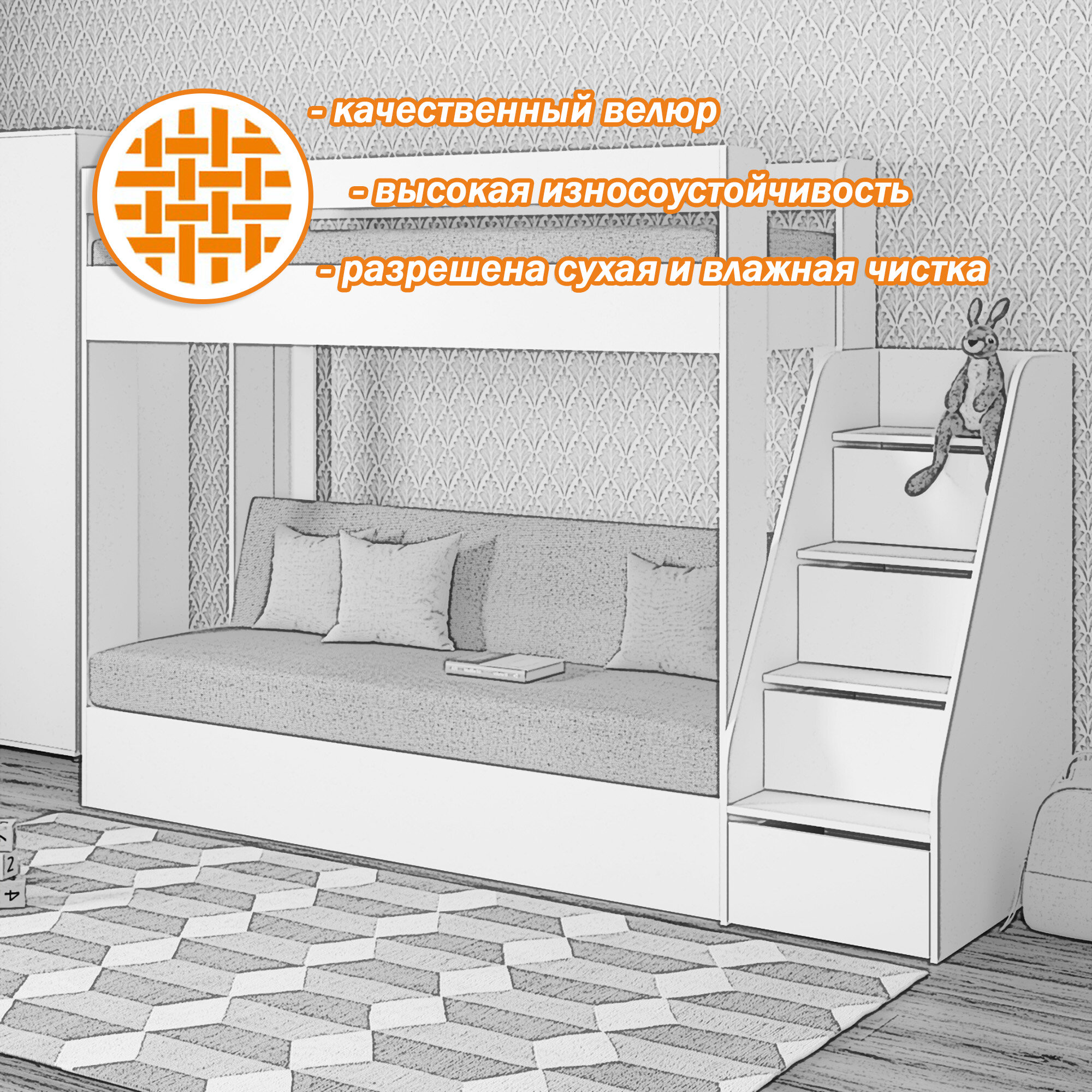 Кровать двухъярусная с лестницей-комодом Есэндвич new Лаворо,248х87х174 см(Анкор белый/Ирис/Рогожка Savana Grey)