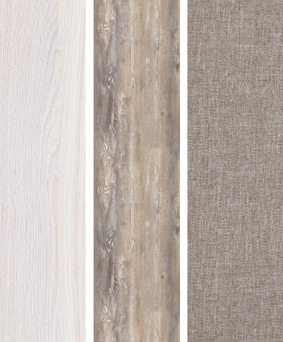 Кровать двухъярусная с лестницей-комодом Есэндвич new Лаворо,248х87х174 см(Анкор белый/Дуб Аризона/Рогожка Savana Latte)