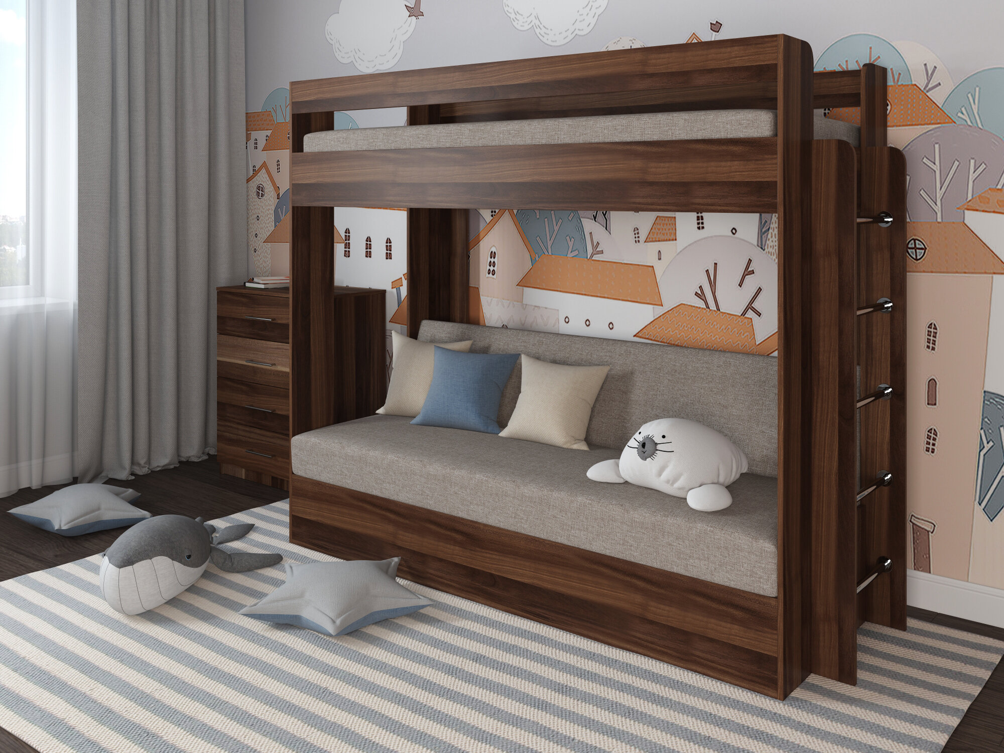 СохранитьКровать двухъярусная с диваном Есэндвич new Лаворо (Слива валлис/Savana Latte) интересное: