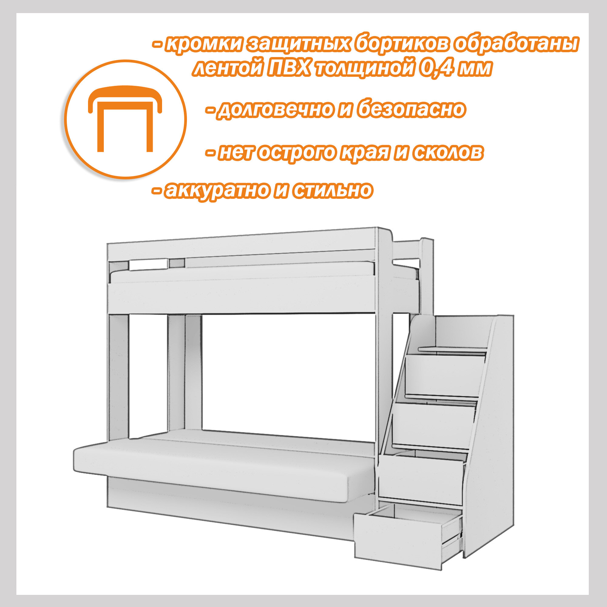 Кровать двухъярусная с лестницей-комодом Есэндвич new Лаворо,248х87х174 см(Анкор белый/Ирис/Рогожка Savana Grey)