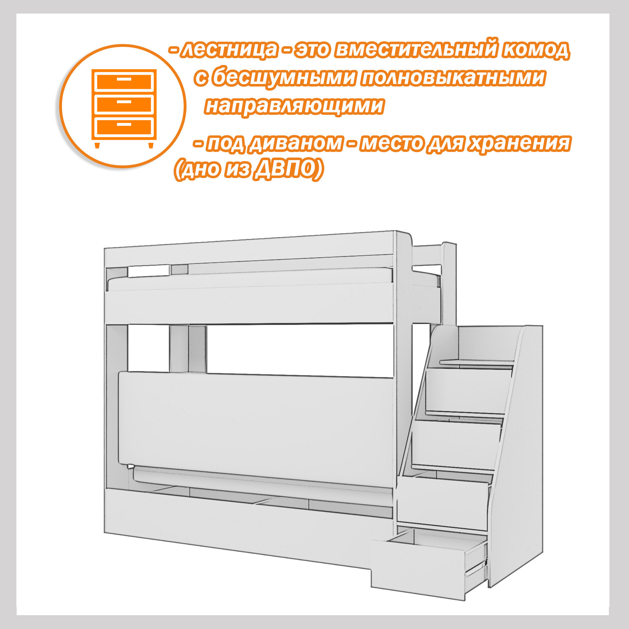 Кровать двухъярусная с диваном и лестницей-комодом Есэндвич Лаворо (Анкор белый/Бетон пайн экзотик/Savana Latte)