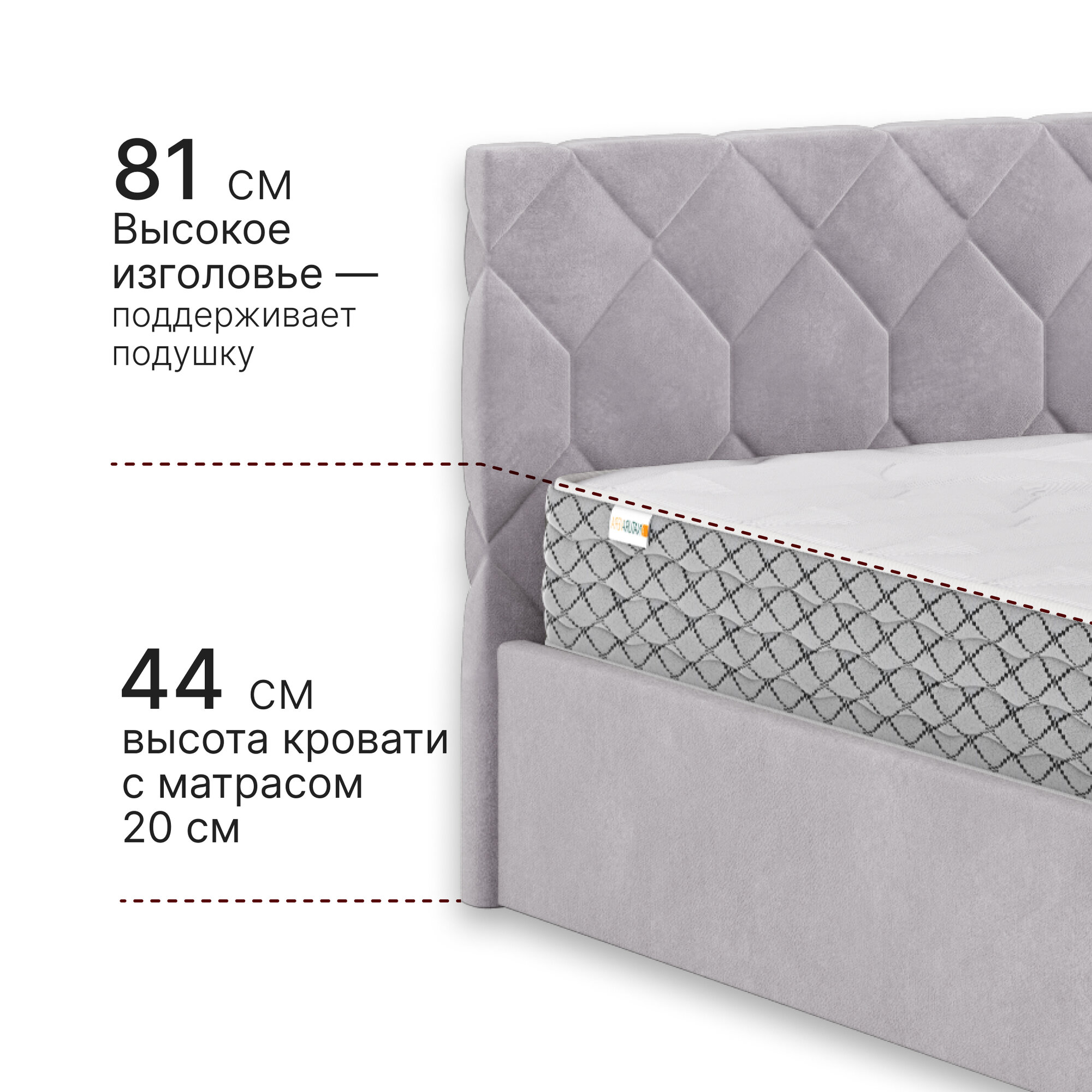 Кровать с матрасом Роза Серая Велюр 160х200