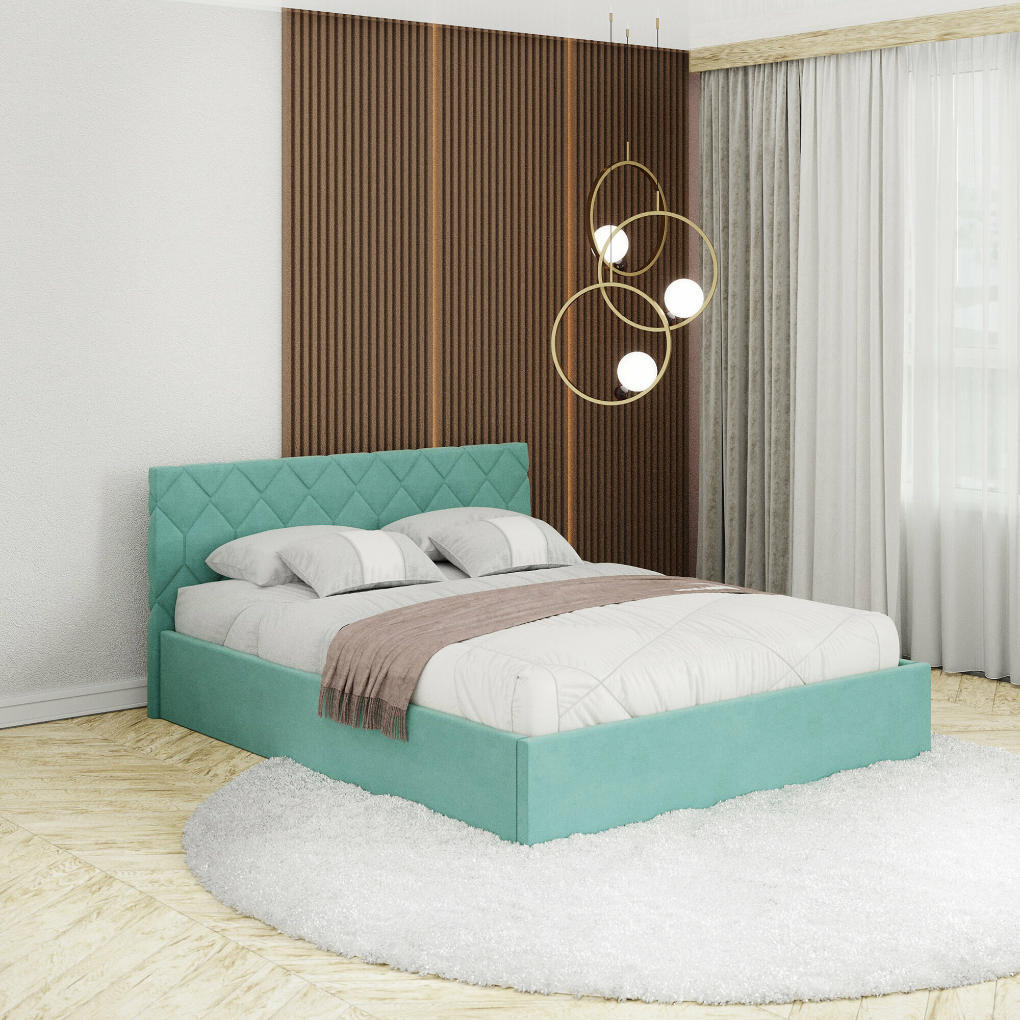 Купить Кровать Техас двуспальная 160х200 с матрасом с подъемным механизмом, с ортопедическим основанием и ящиком для белья, велюр мятный