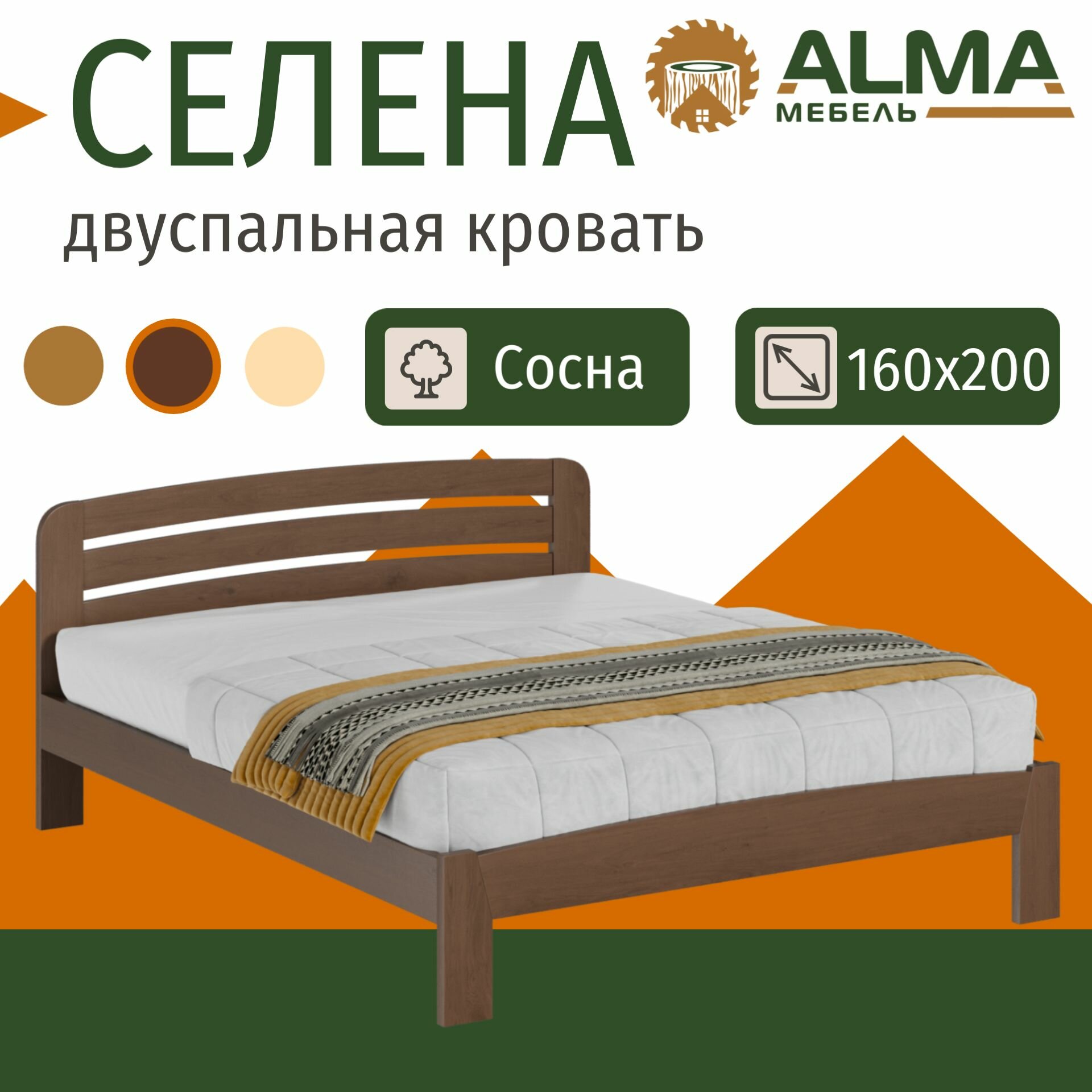 СохранитьДвуспальная кровать 160х200 Селена деревянная, из сосны, цвет Палисандр интересное: