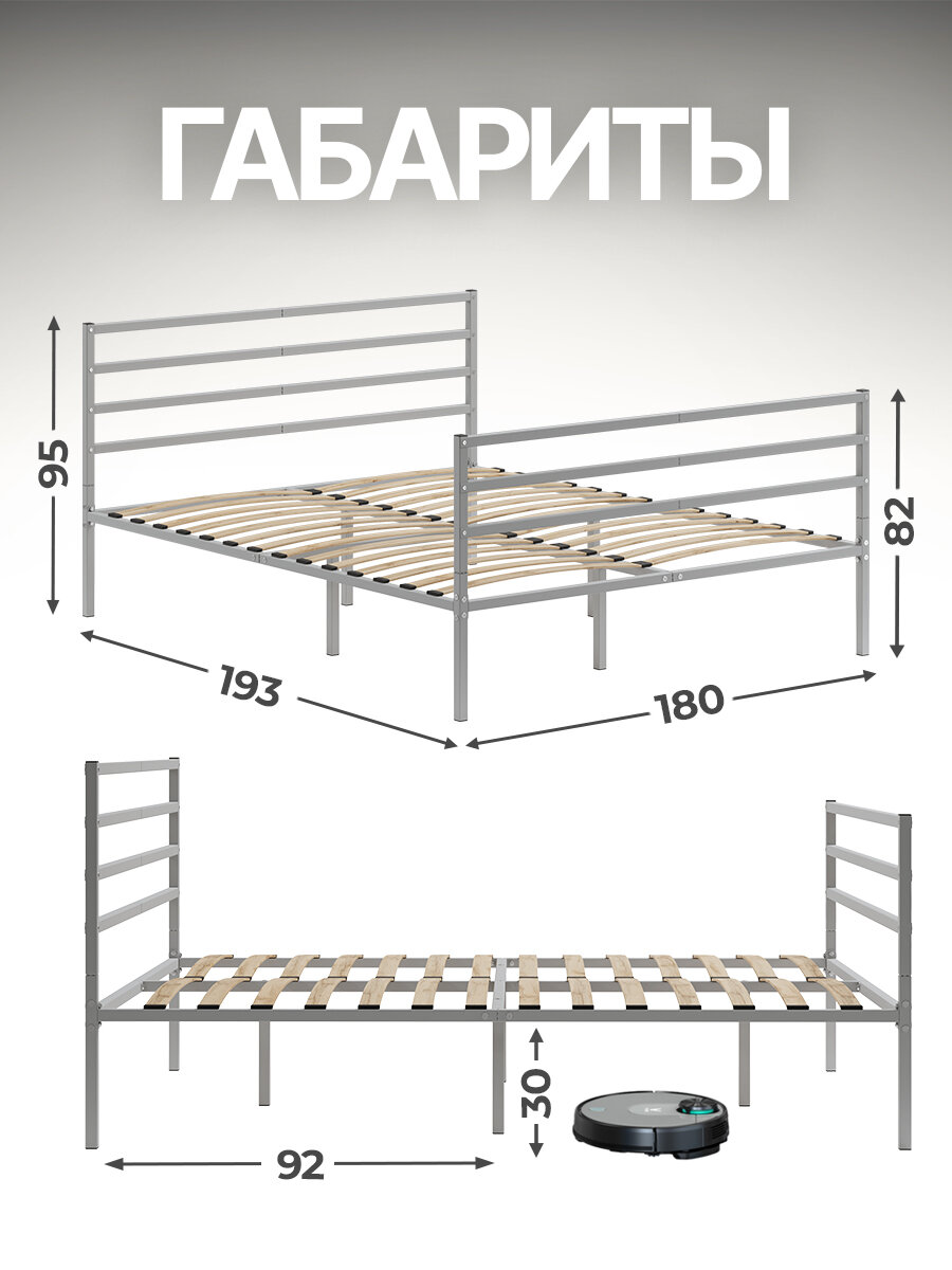 СохранитьКровать металлическая Металика Г4+Г3 180х190 серая с держателями для матраса и доп. опорами интересное: