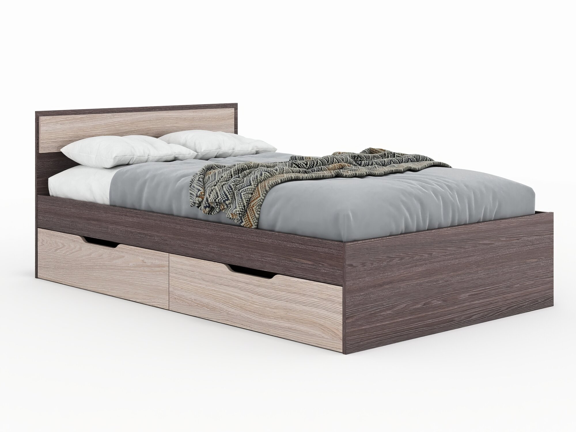 Есэндвич Монако Кровать 120х200 полутораспальная, 200х78х123 см (Ясень шимо светлый/Ясень шимо тёмный), с ящиками