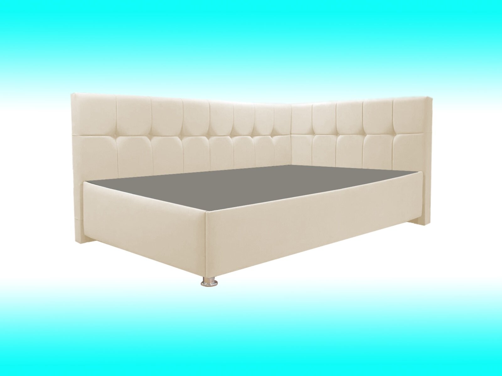 Односпальная кровать Эльза 90x200 с подъемным механизмом и с коробом для белья велюр бежевый ножки 13 см хром угол правый