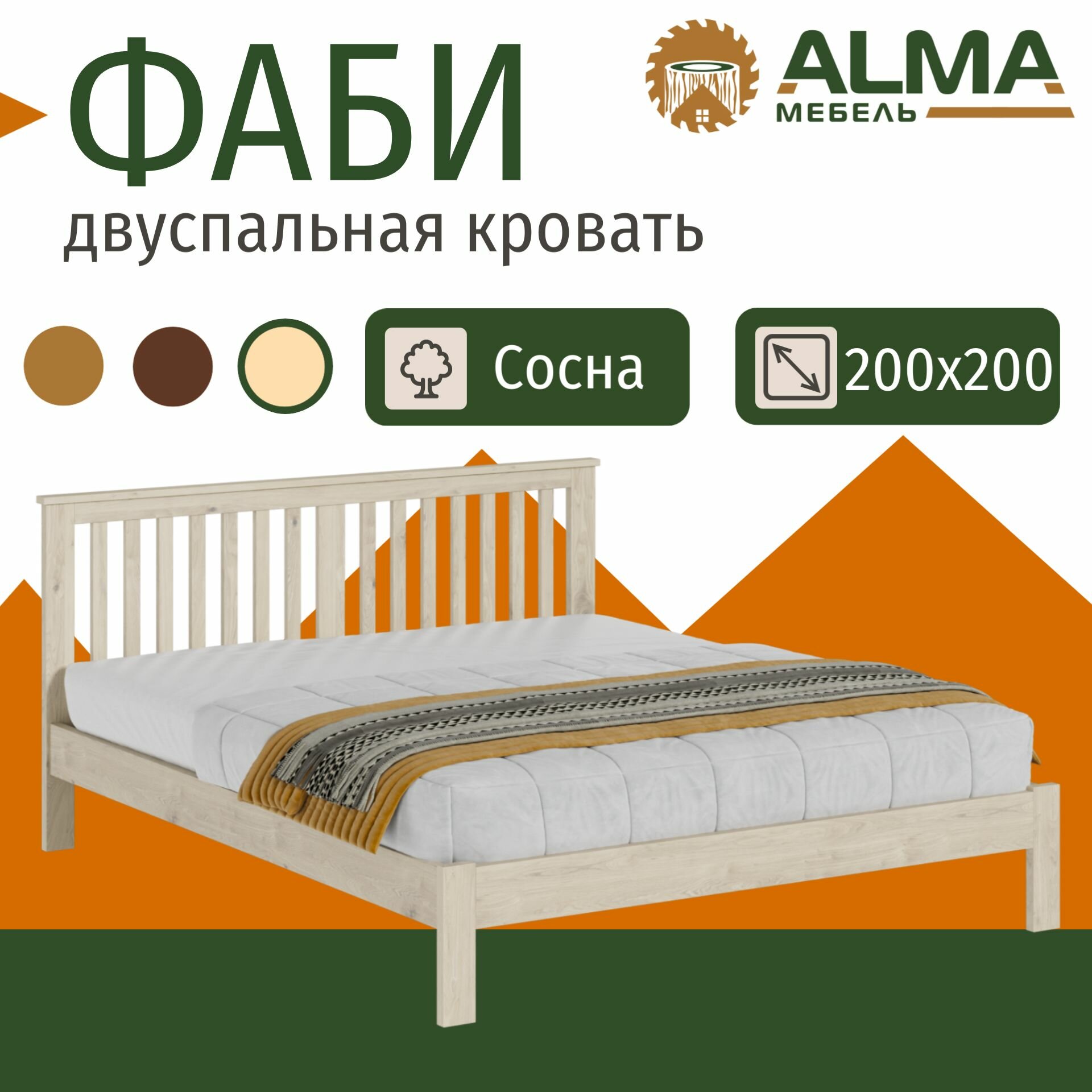 Купить Двуспальная кровать 200х200 Фаби деревянная, из сосны, цвет Белый прозрачный