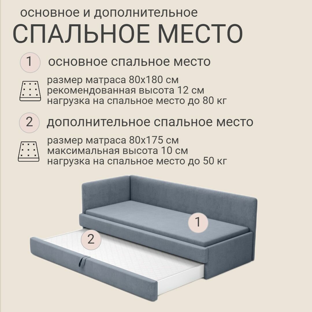 Детский диван-кровать Майя 180х80 см бежевый с выкатным ящиком Кровать детская от 3х лет Без матраса