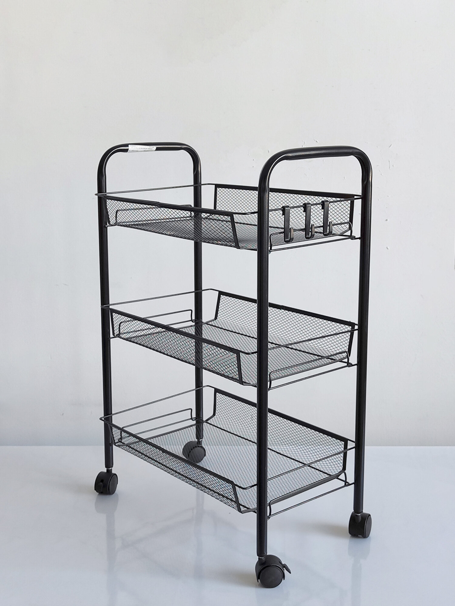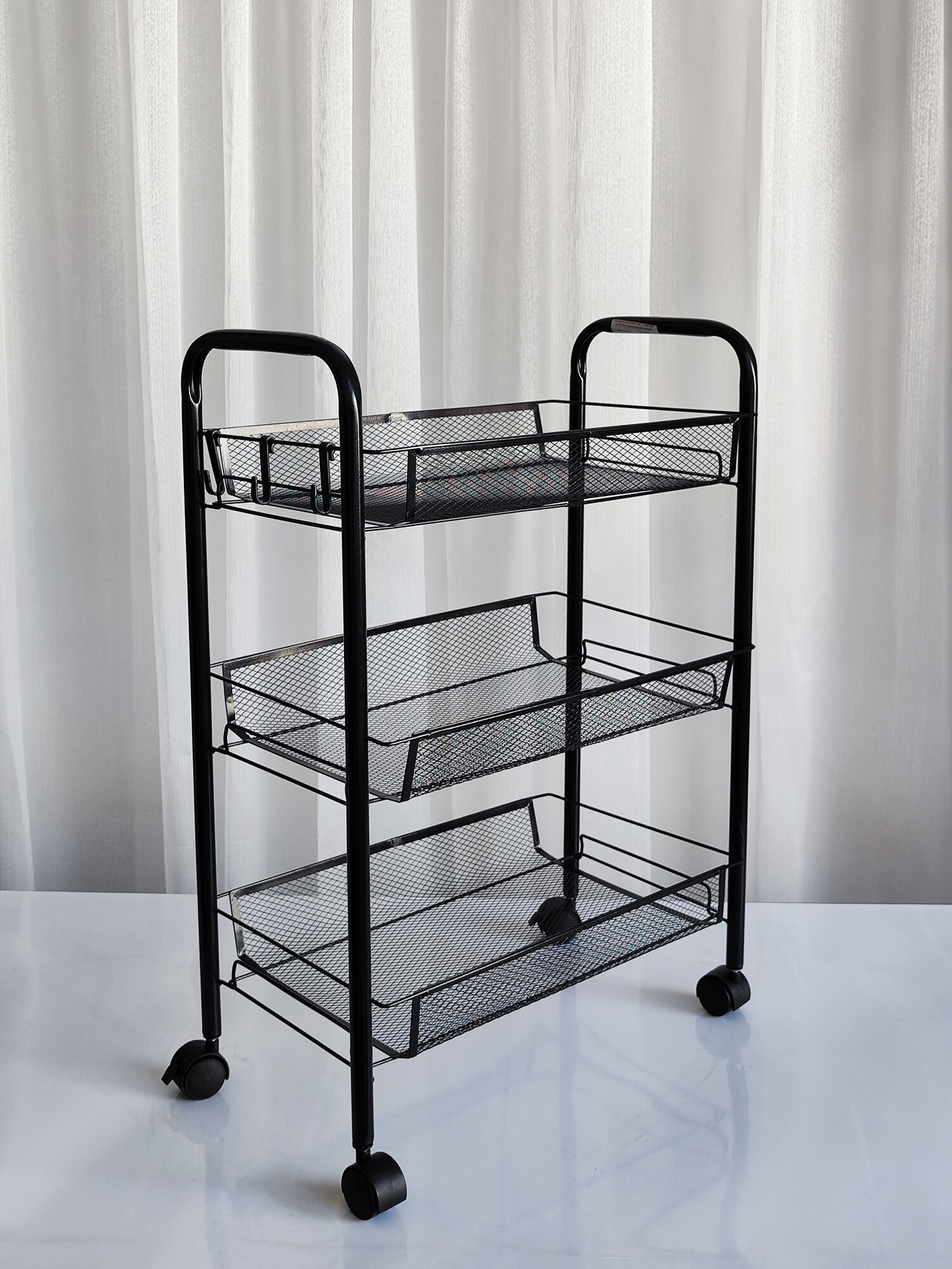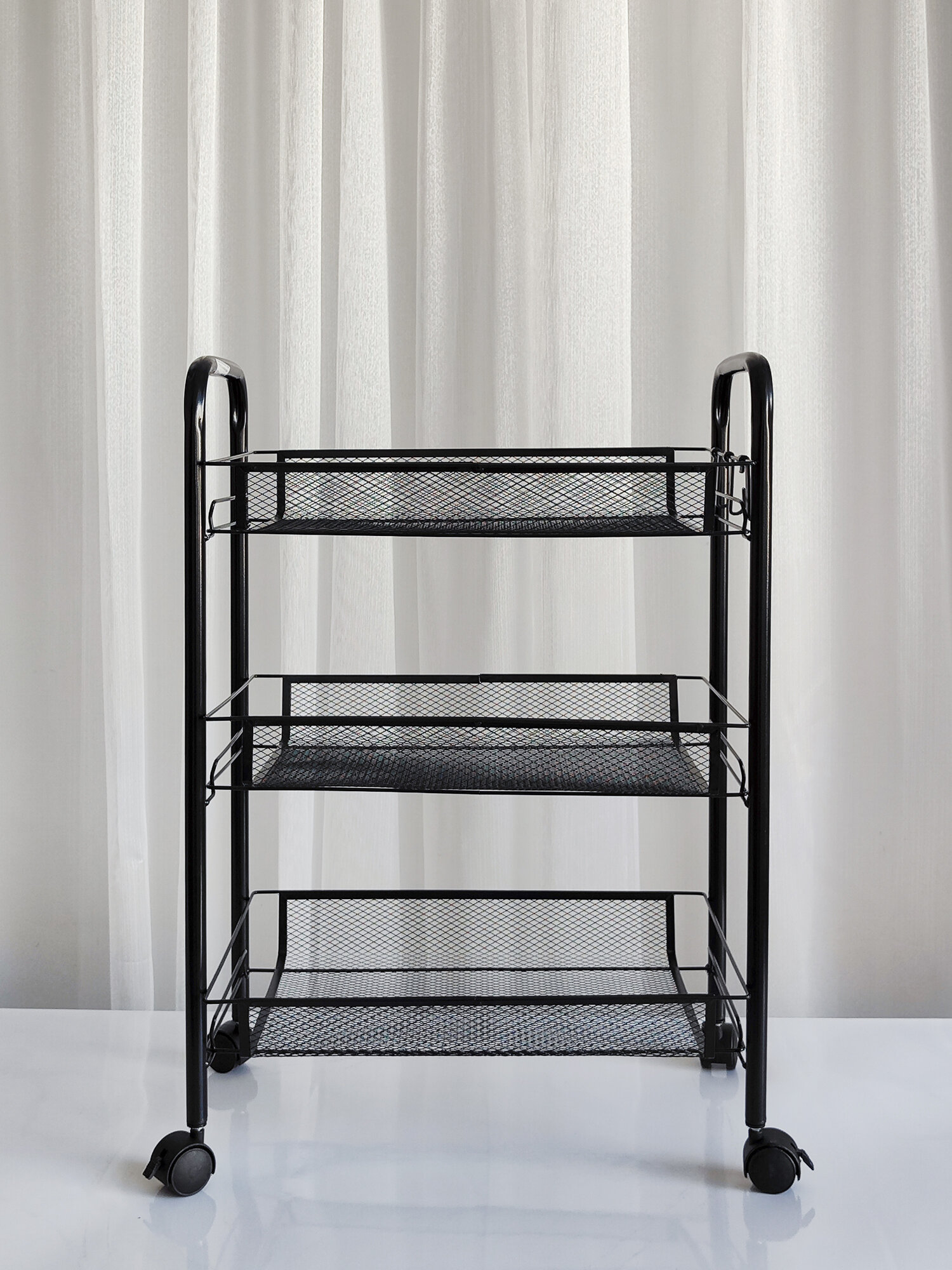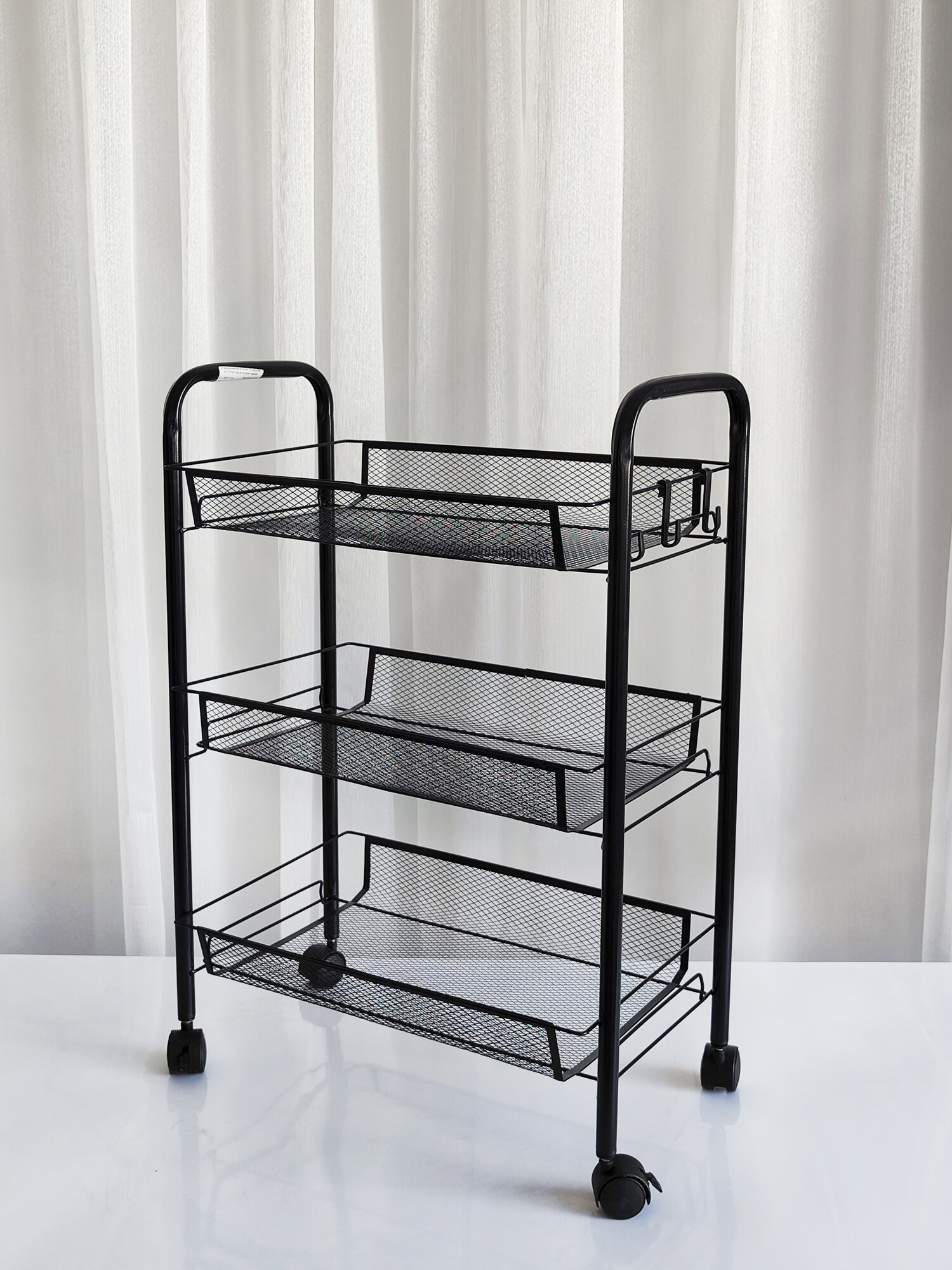 Купить Этажерка для ванной, кухни и прихожей из металла с 3-мя сетчатыми полками на колесах, нагрузка до 15 кг, черный