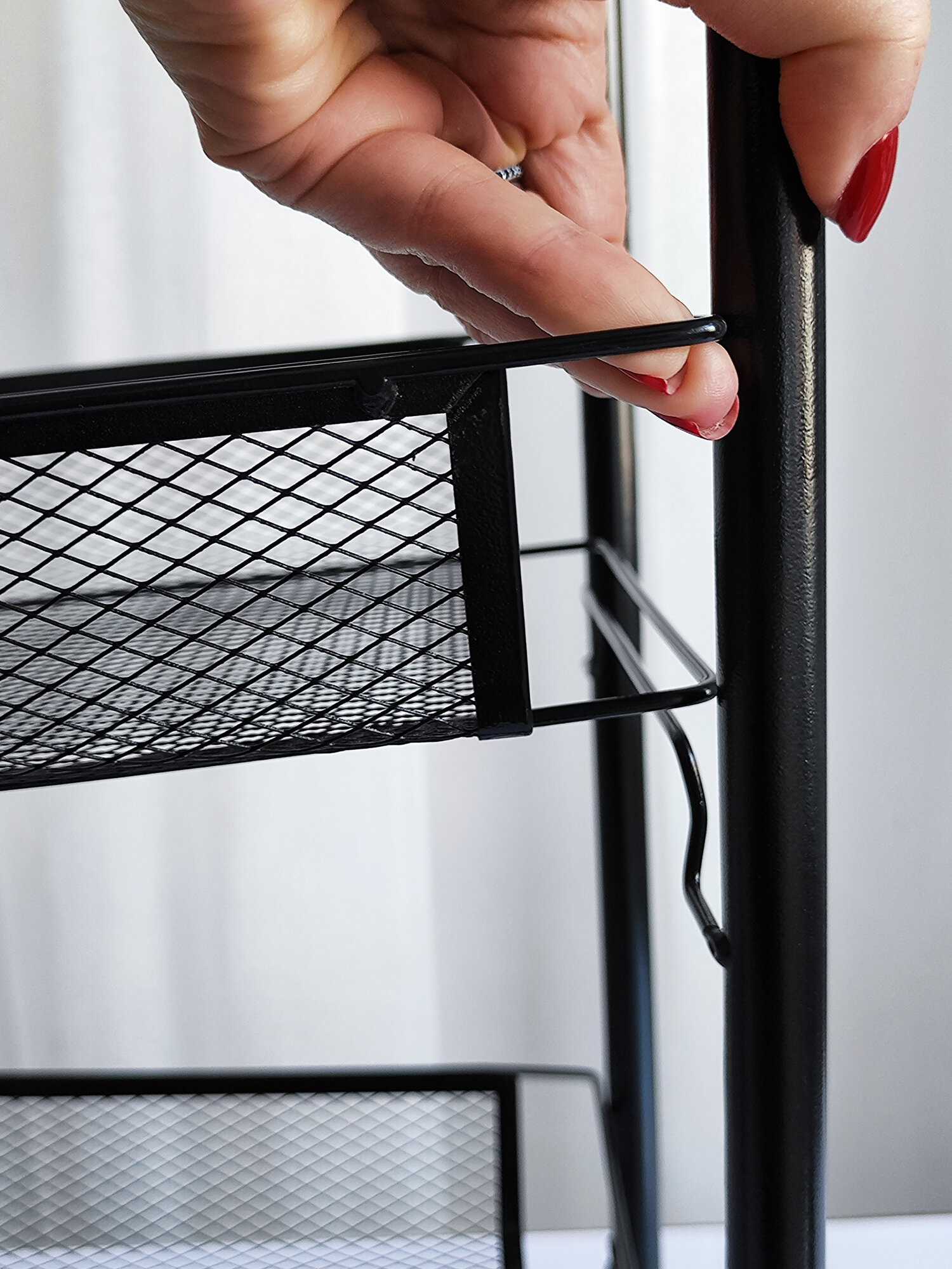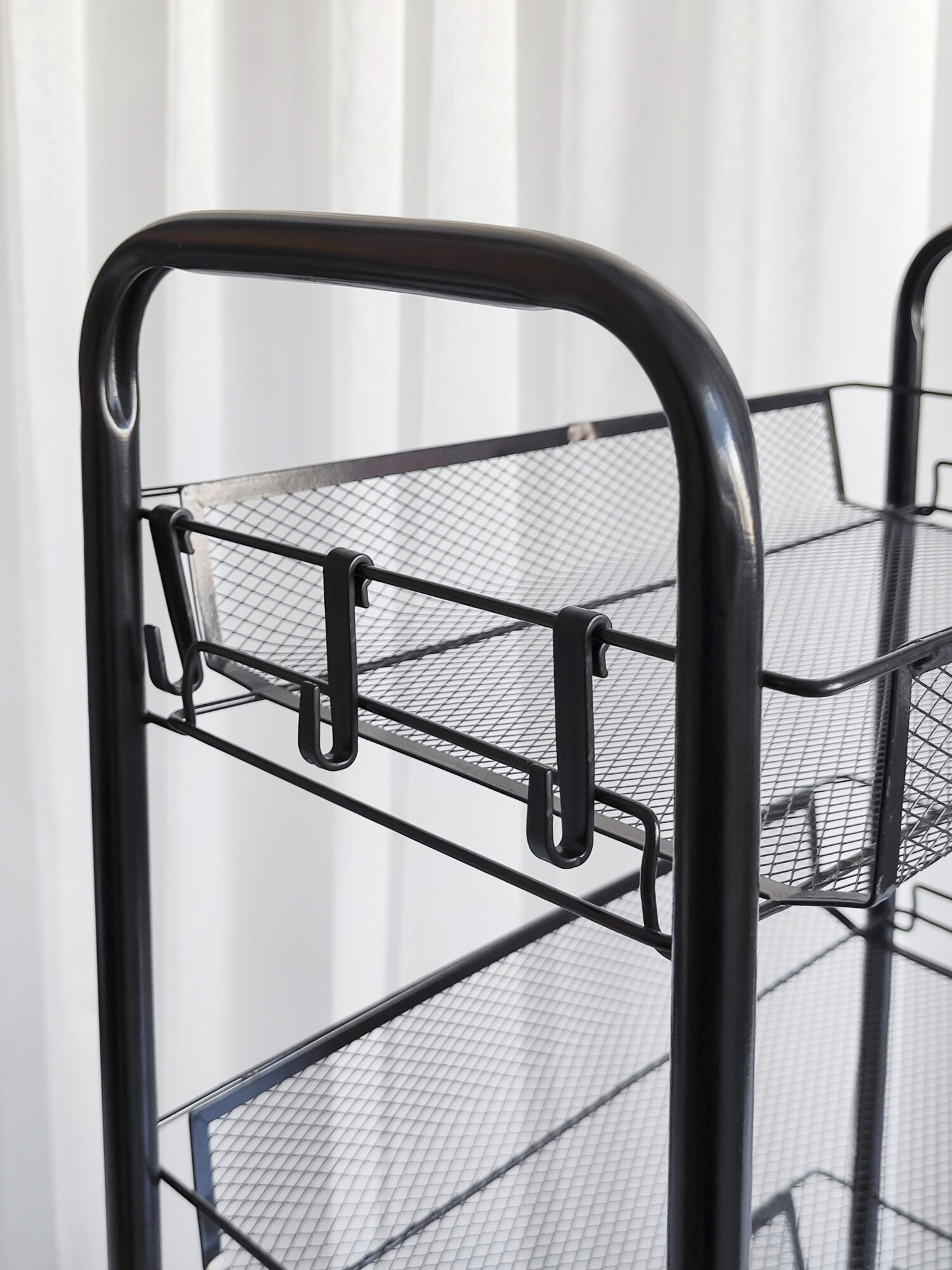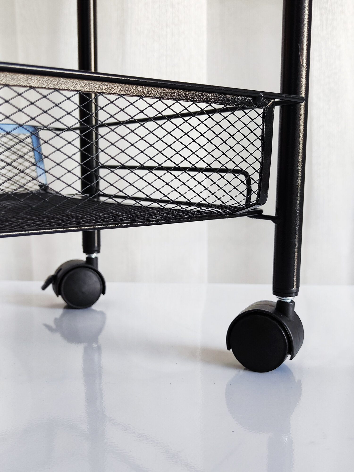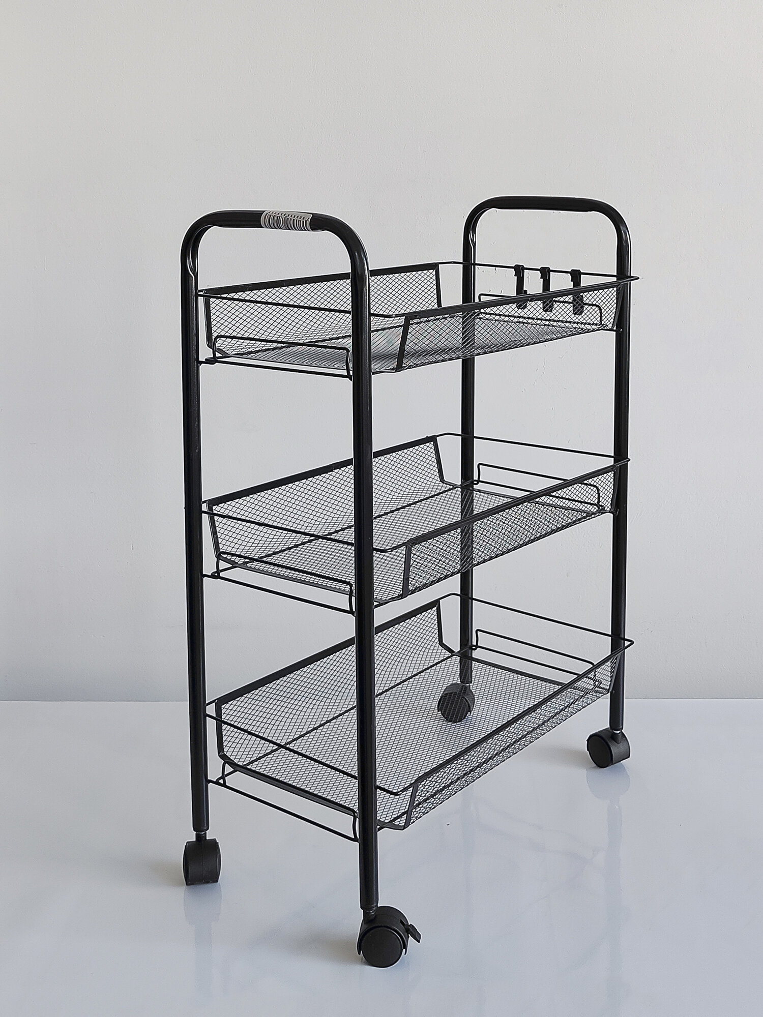 Купить Этажерка для ванной, кухни и прихожей из металла с 3-мя сетчатыми полками на колесах, нагрузка до 15 кг, черный