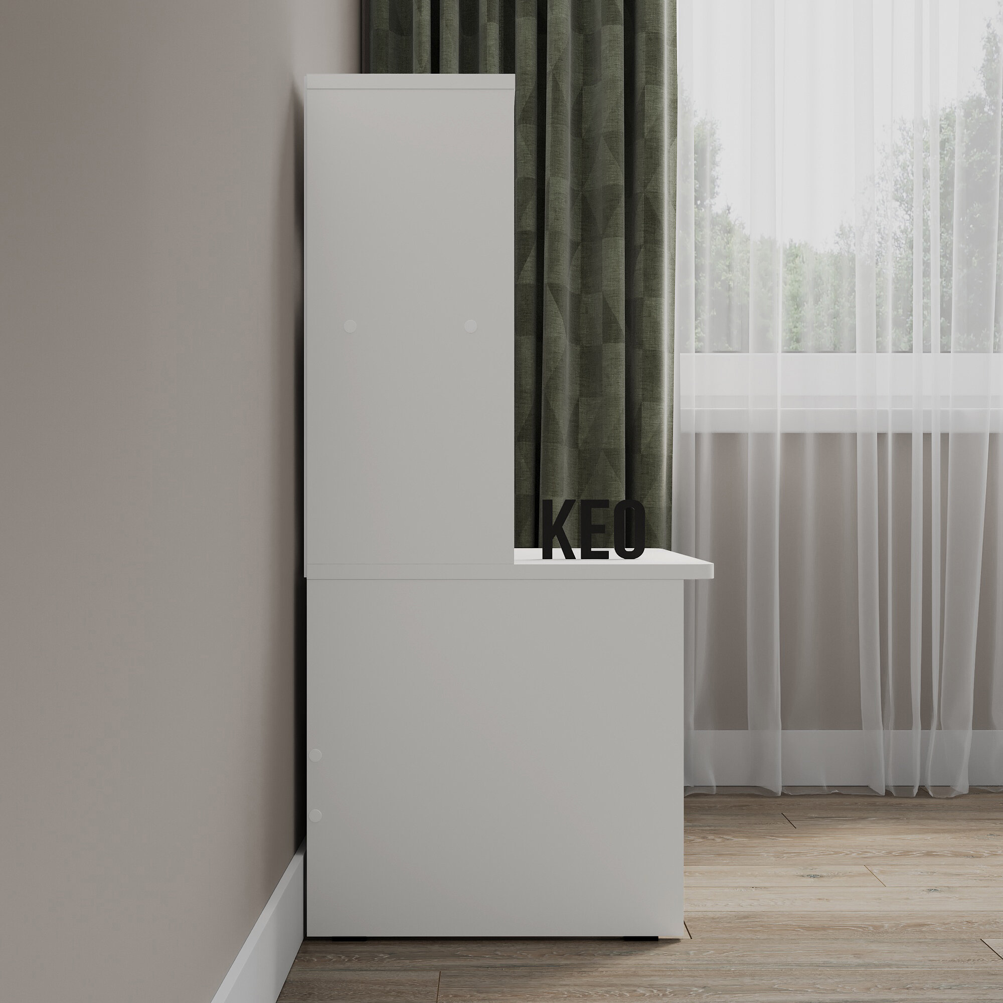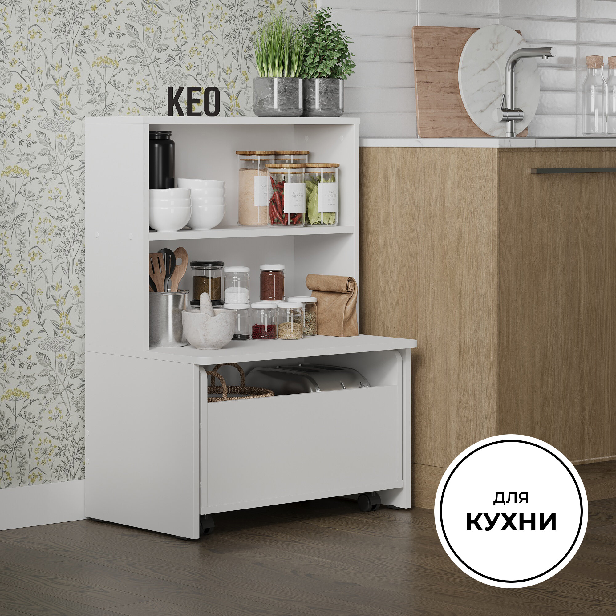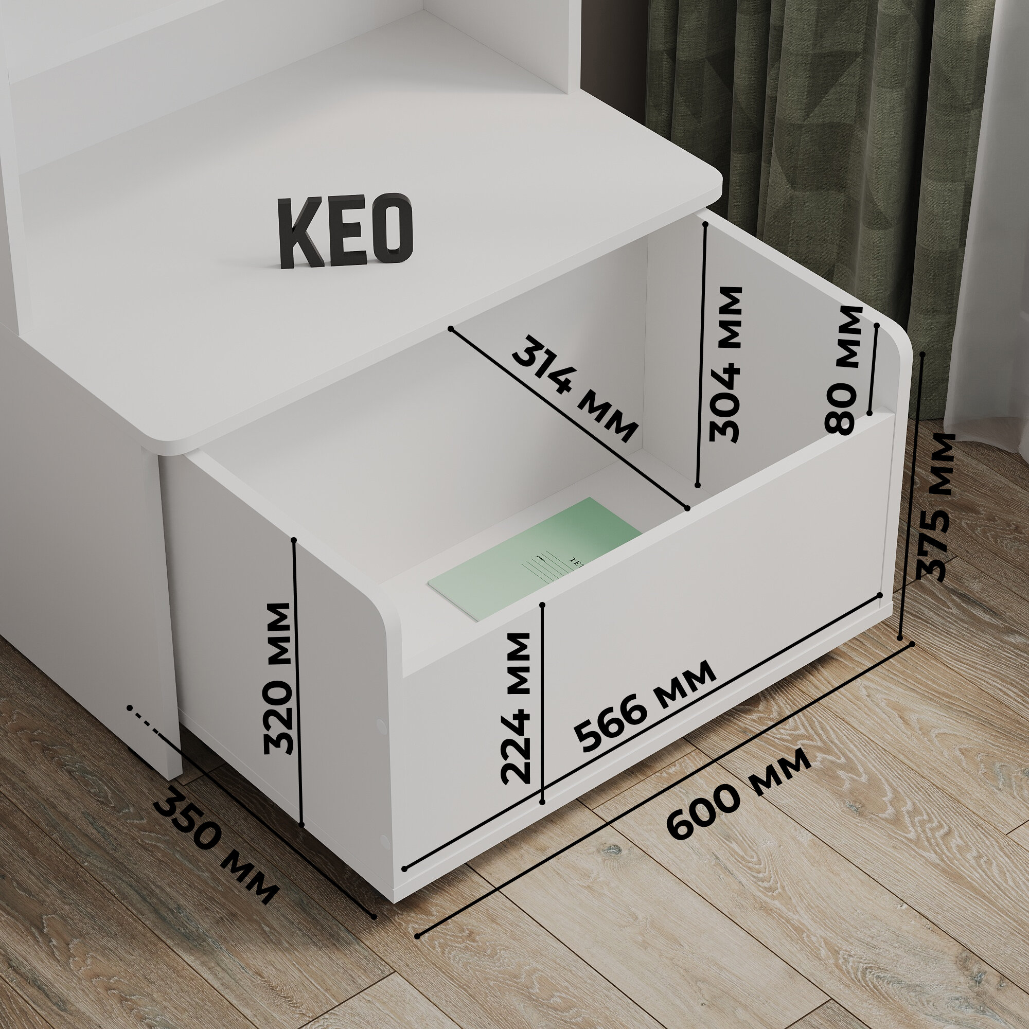 Стеллаж напольный Кео СТЖ-433 белый молочный с ящиком полками для игрушек книг в детскую для спальни балкона 930х304х602