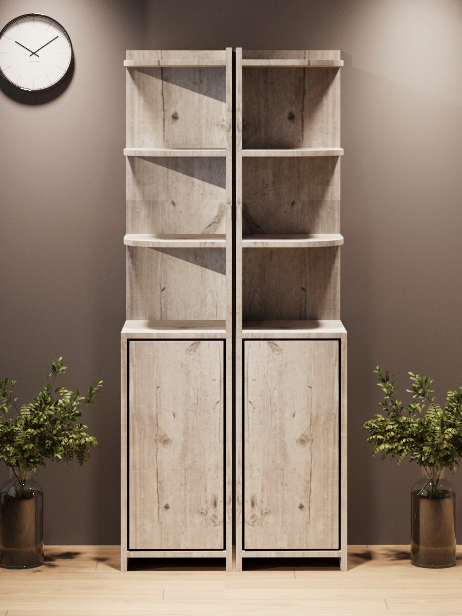Стеллаж деревянный Нонтон Симпл графит 40.2x51.4x190 см, с ящиками