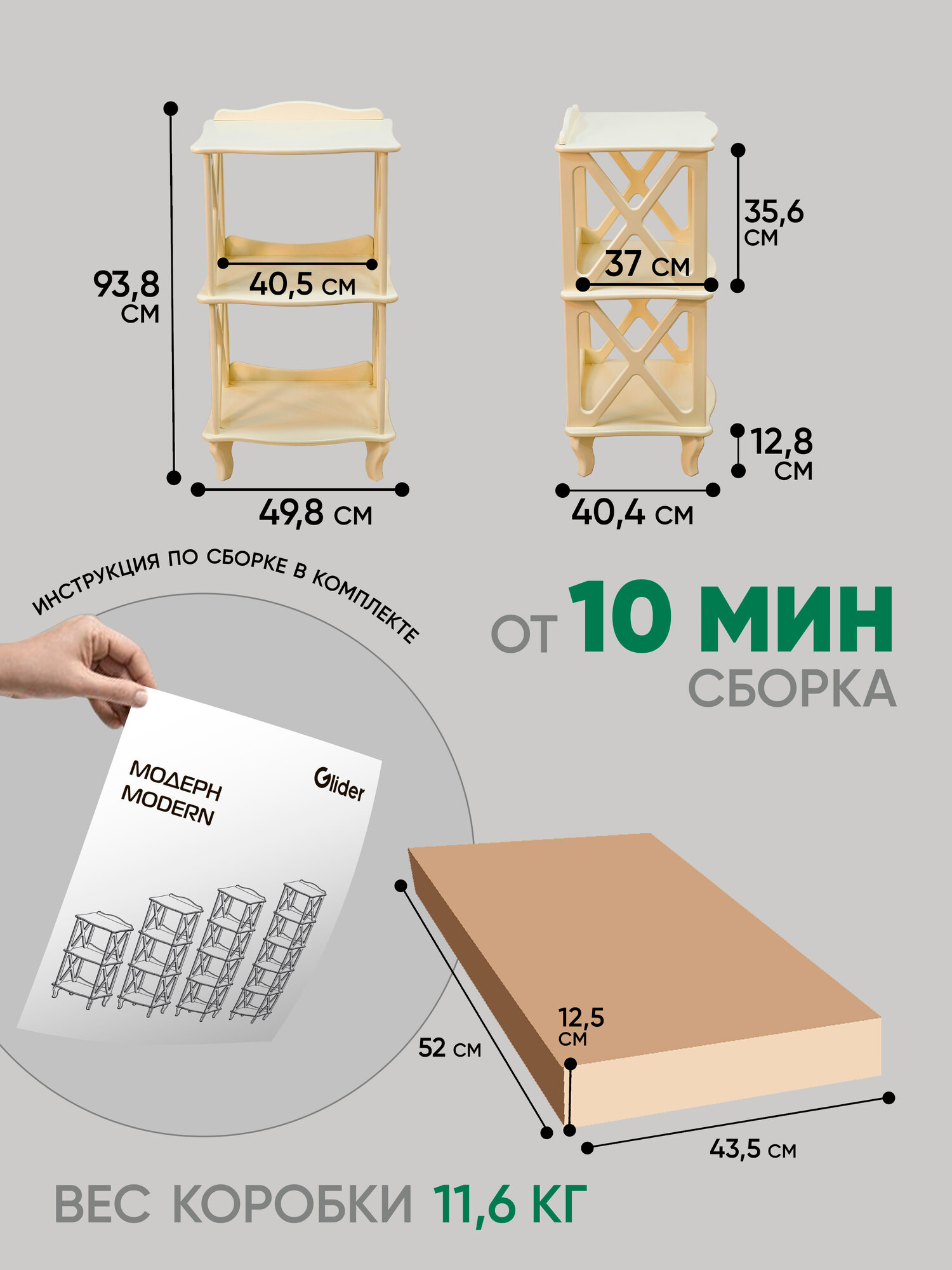 Этажерка-стеллаж деревянный напольный Glider Джульетта 3, цвет серый