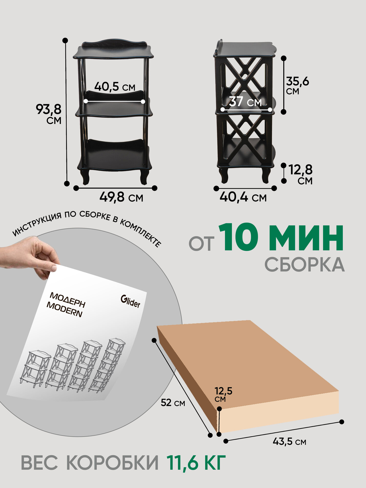 СохранитьСтеллаж Glider "Модерн 2", напольный, МДФ, 93.8x40.4x49.8, чёрный интересное: