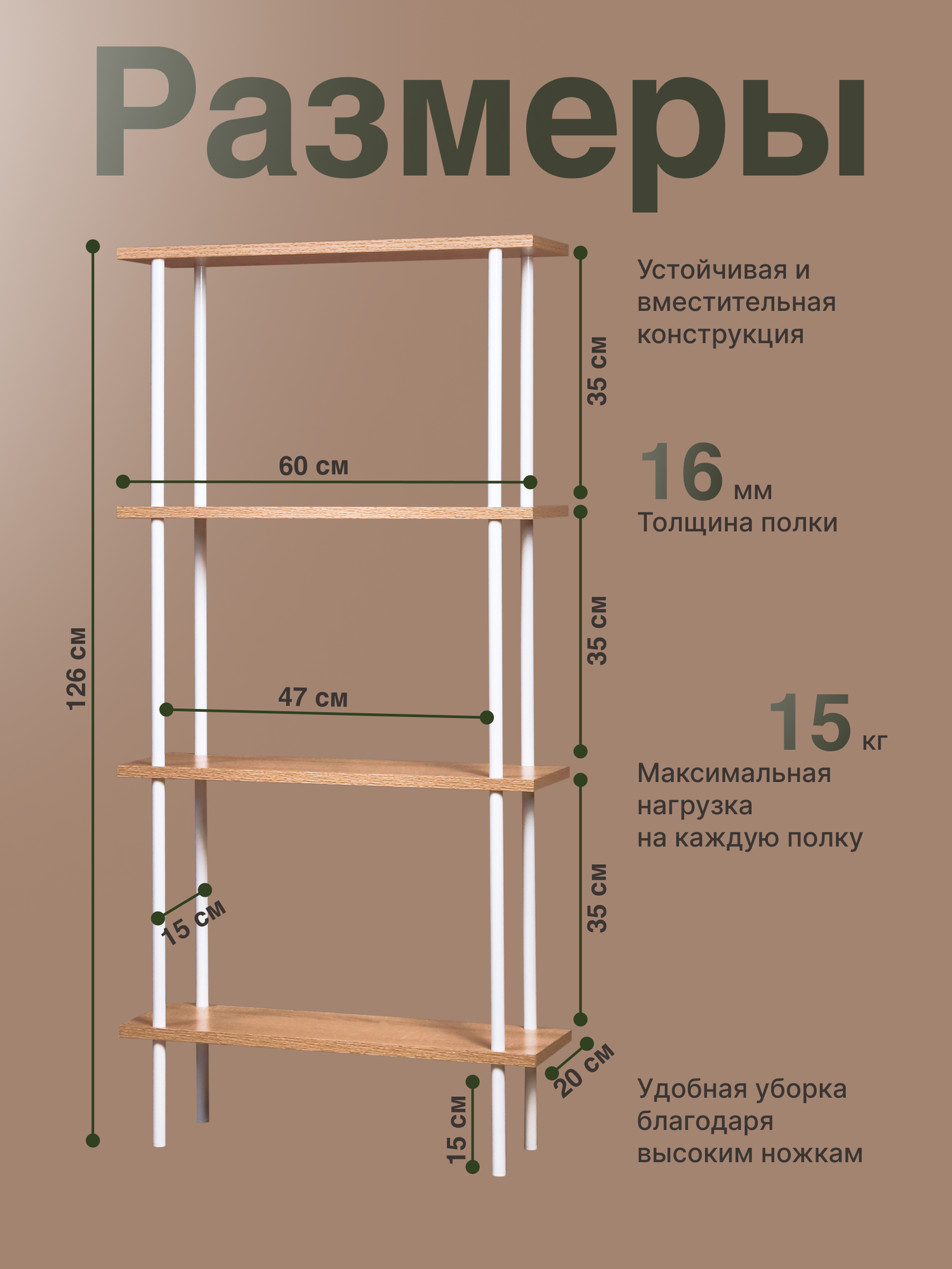 Стеллаж деревянный напольный UniStor Эльбрус 60х20 цвет белый интересное:
