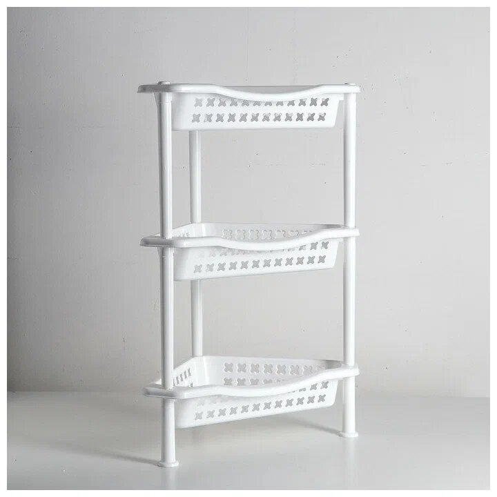 Купить Этажерка Альтернатива М6471, угловая, 3 яруса, пластик, белая, 42,5x27x60 см