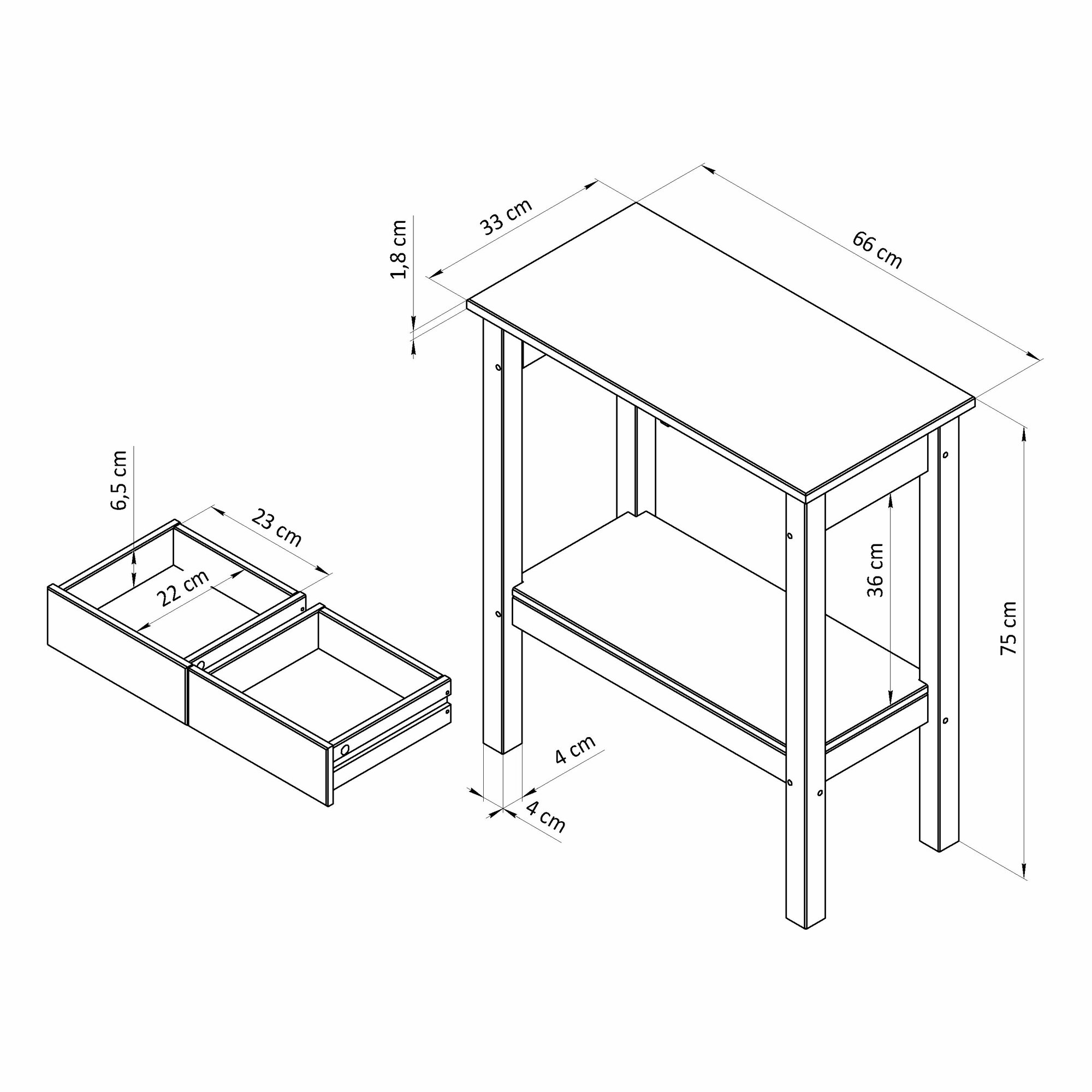 Купить Консоль из массива сосны Ральф с 2 ящиками, 66х33х75 см, в скандинавском стиле, натуральная отделка