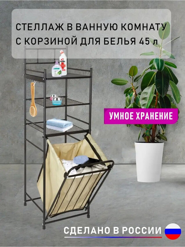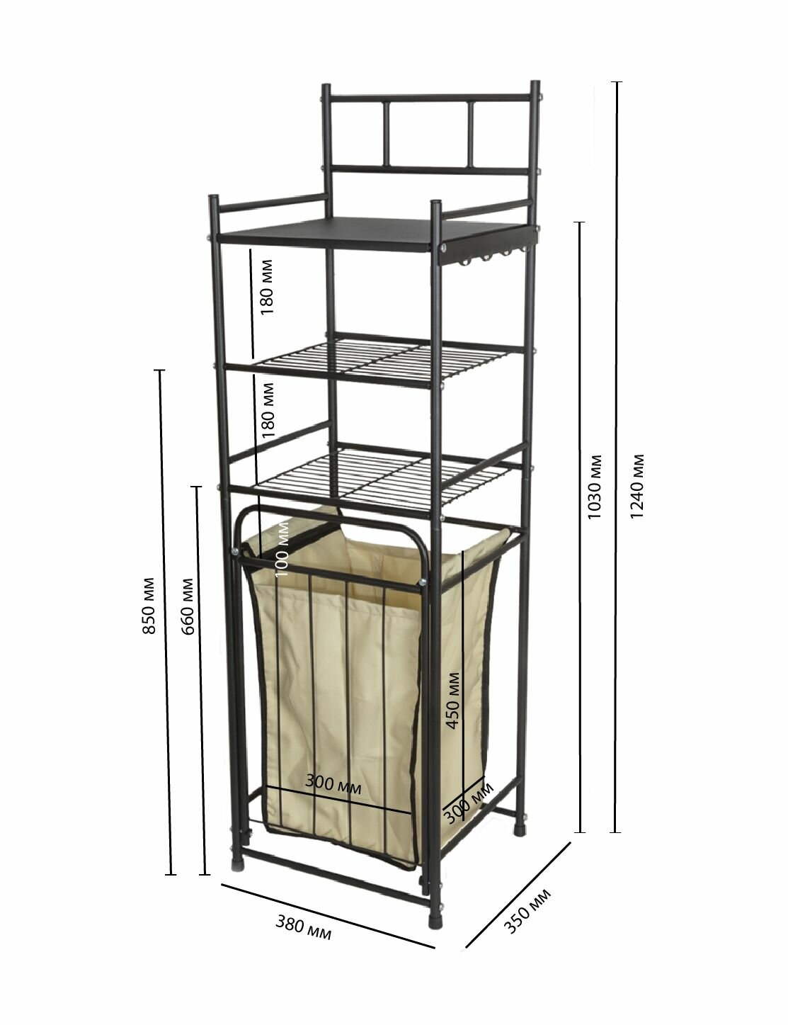Стеллаж металлический SUPRA SC-L12502 с откидной корзиной для белья 45 л, 3 полки для хранения, 38х35х125 см интересное: