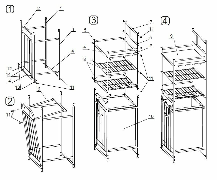Купить Стеллаж металлический SUPRA SC-L12502 с откидной корзиной для белья 45 л, 3 полки для хранения, 38х35х125 см