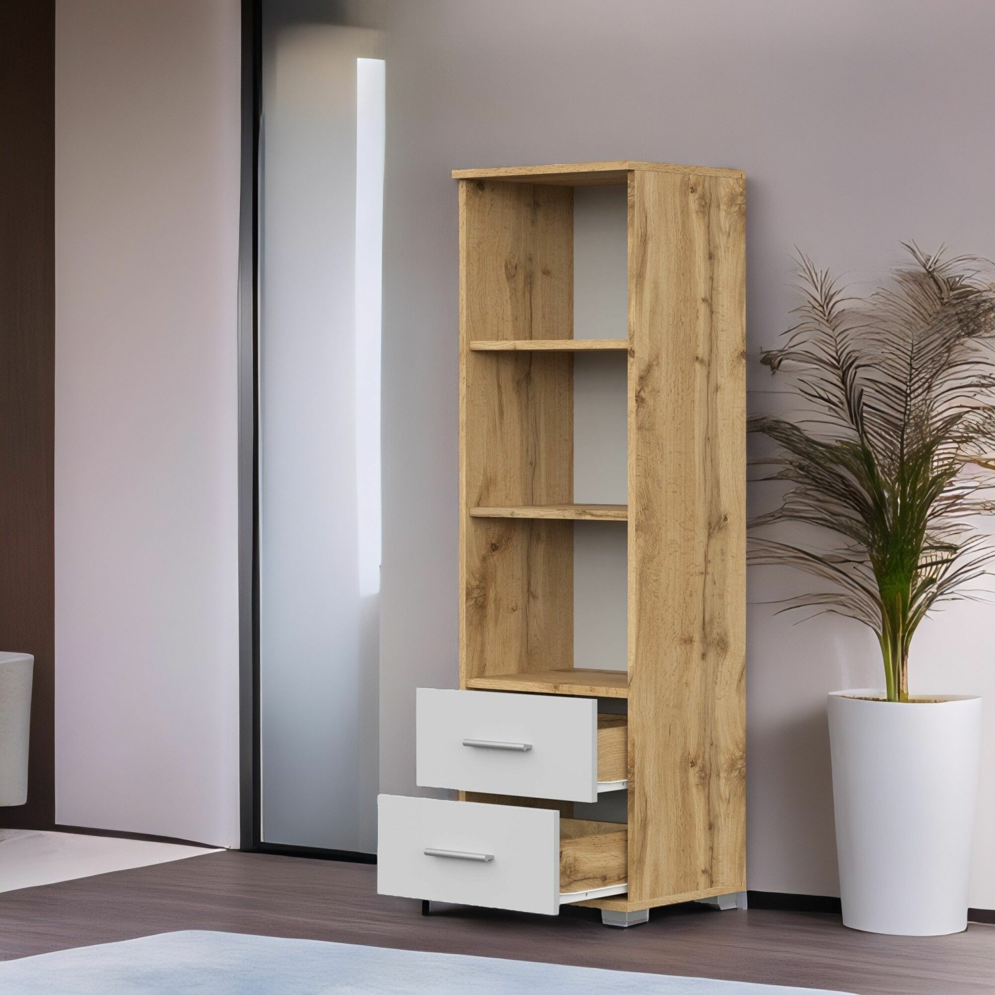 Стеллаж FUN СТ-2.130 , Дуб Вотан/Белый, 69х130х34 см (ШхВхГ)