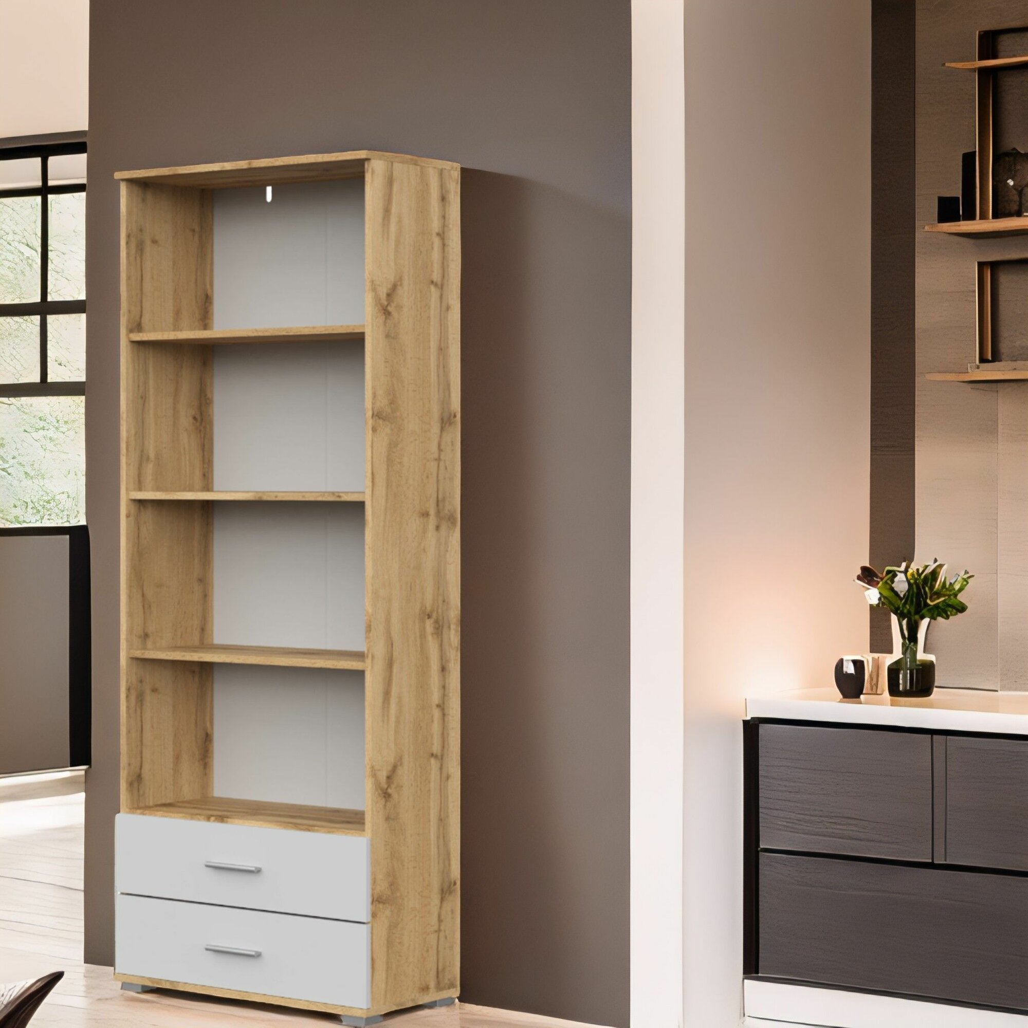 Стеллаж FUN СТ-2.130 , Дуб Вотан/Белый, 69х130х34 см (ШхВхГ)