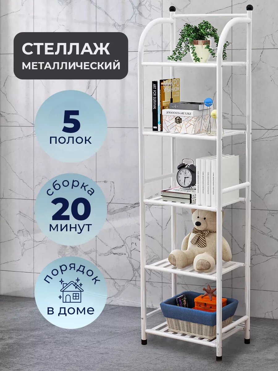 Стеллаж металлический для хранения вещей напольный, в стиле лофт, белый, 5 полок интересное: