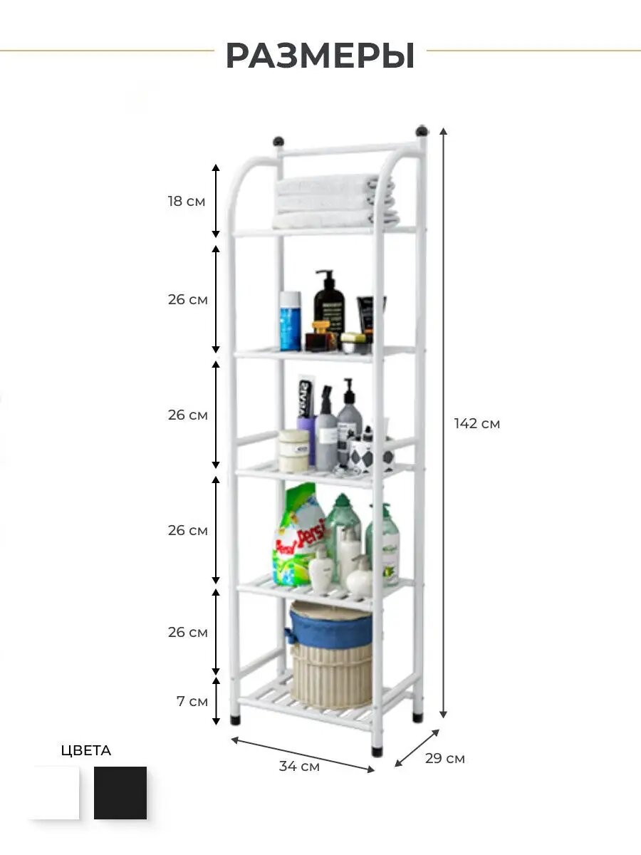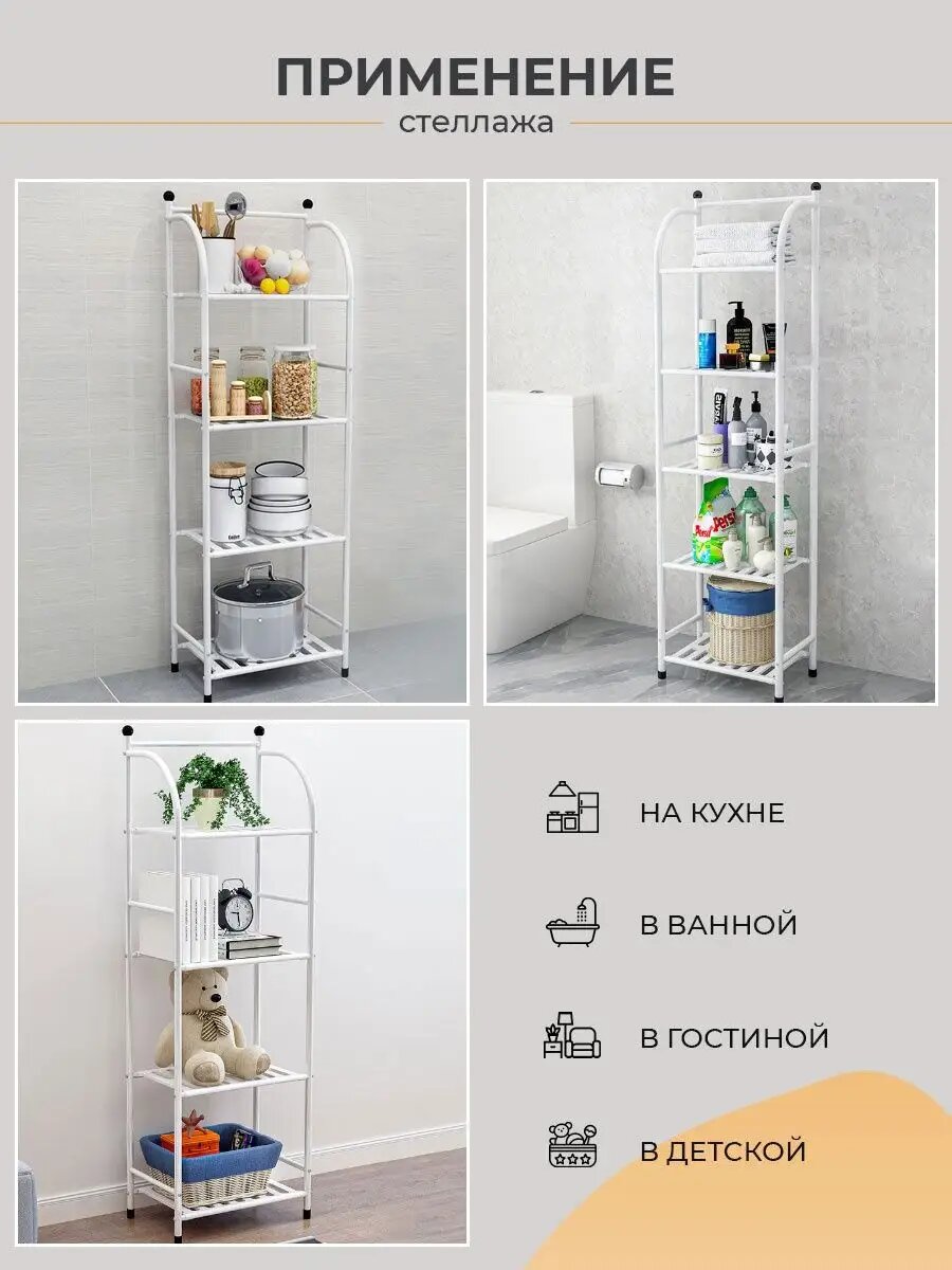 Стеллаж металлический в ванную с полками