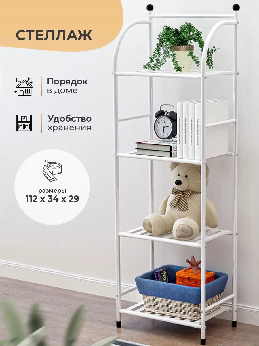 Стеллаж металлический для хранения вещей напольный, в стиле лофт, белый, 4 полки интересное: