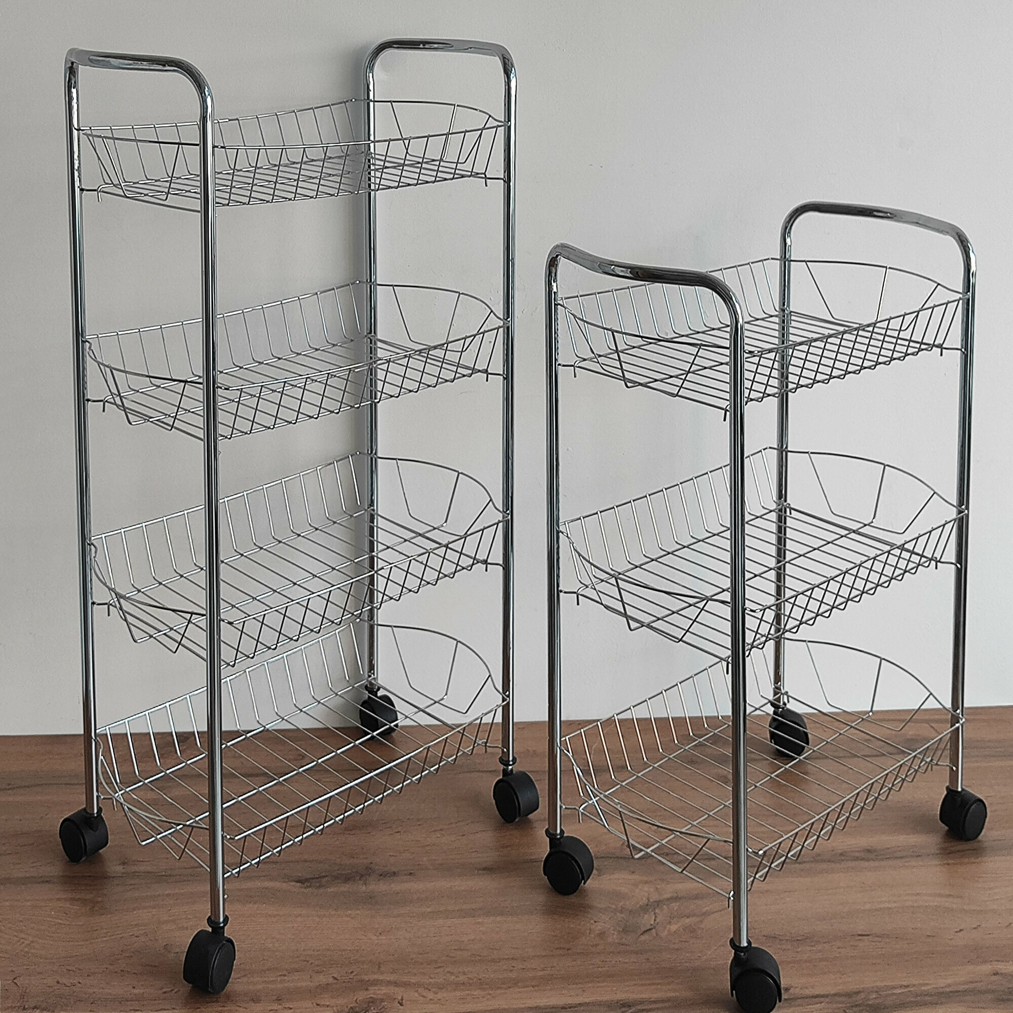 Купить Этажерка металлическая сетка 4-х ярусная на колесах, Baizheng