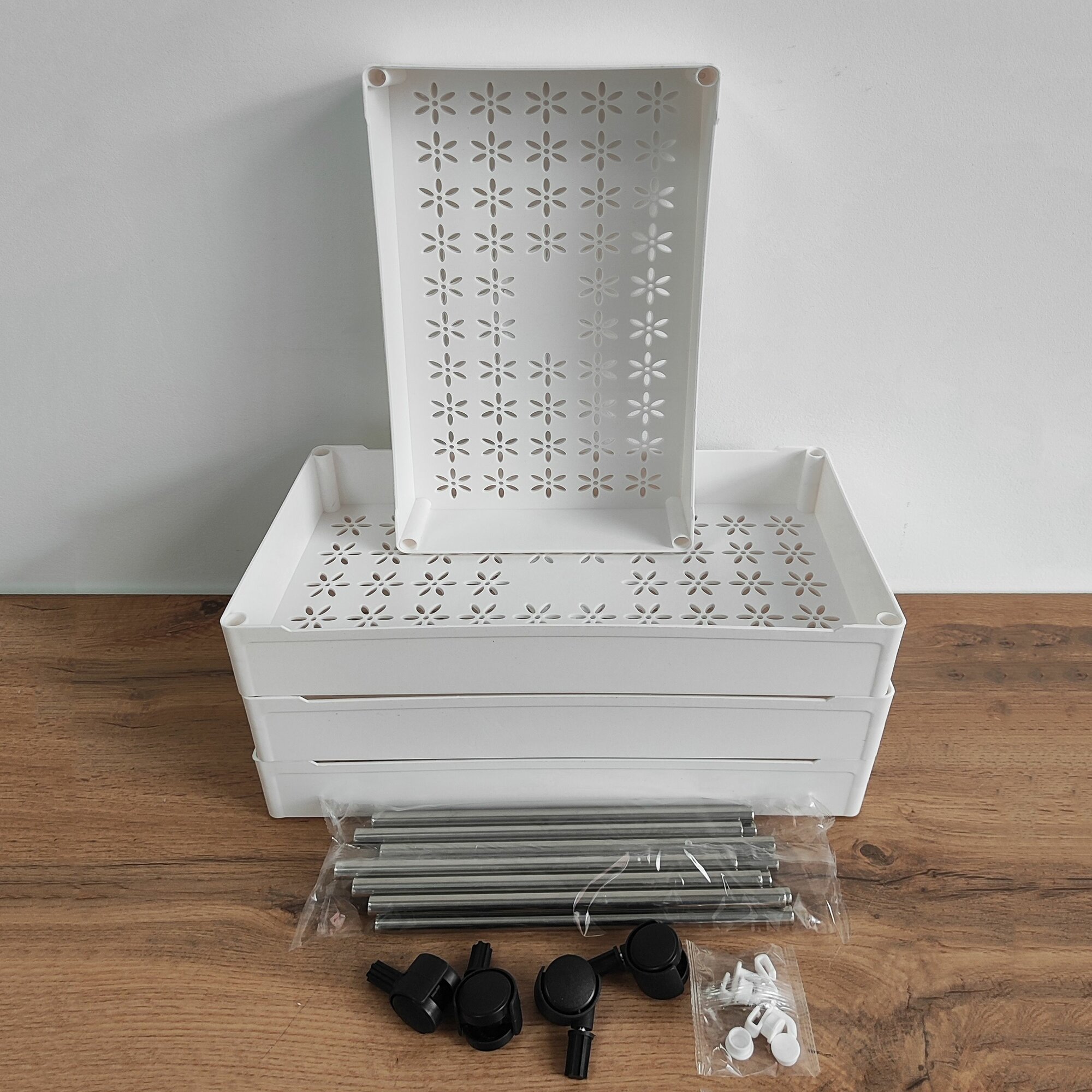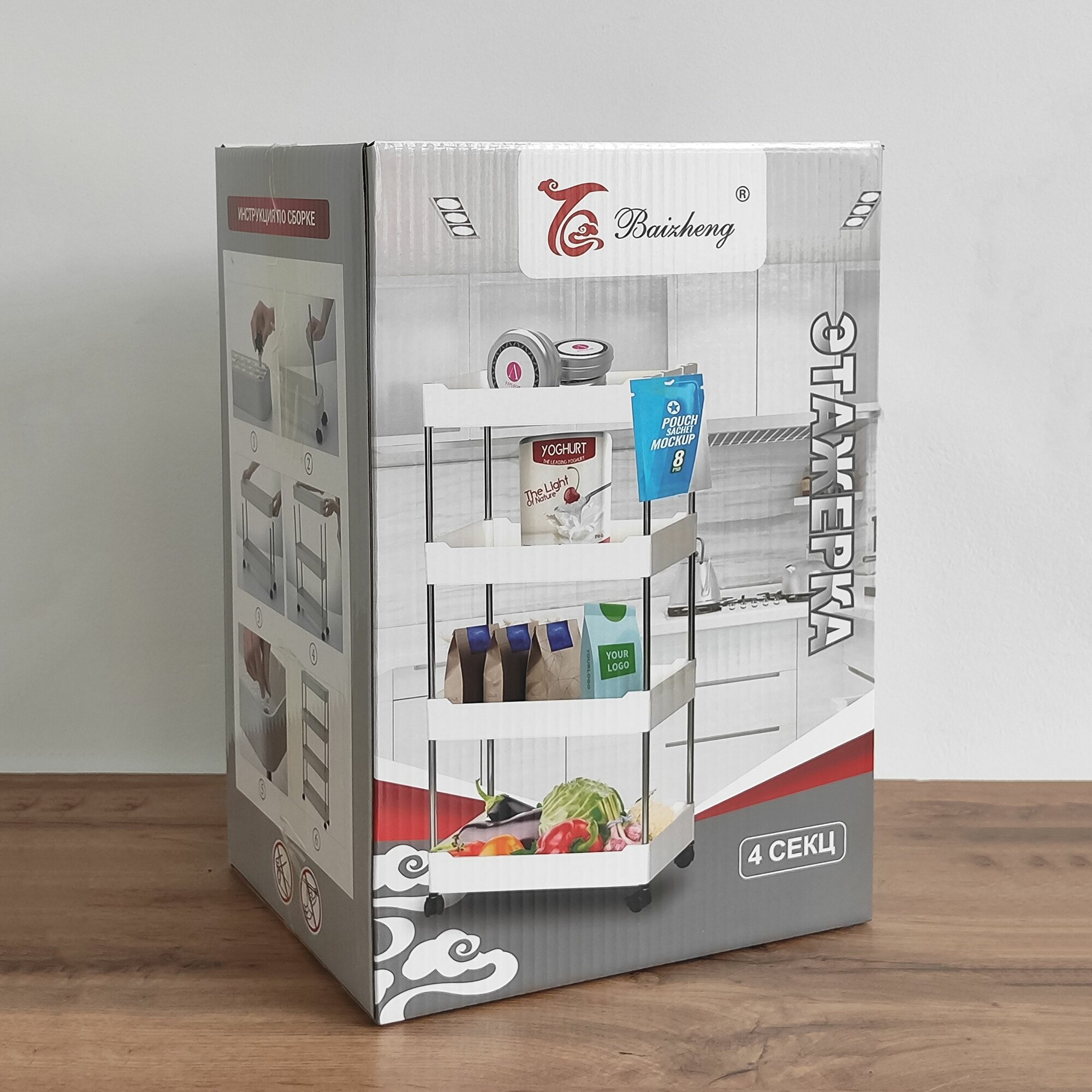 Этажерка пластиковая 4-х ярусная на колесах, белая, Baizheng интересное: