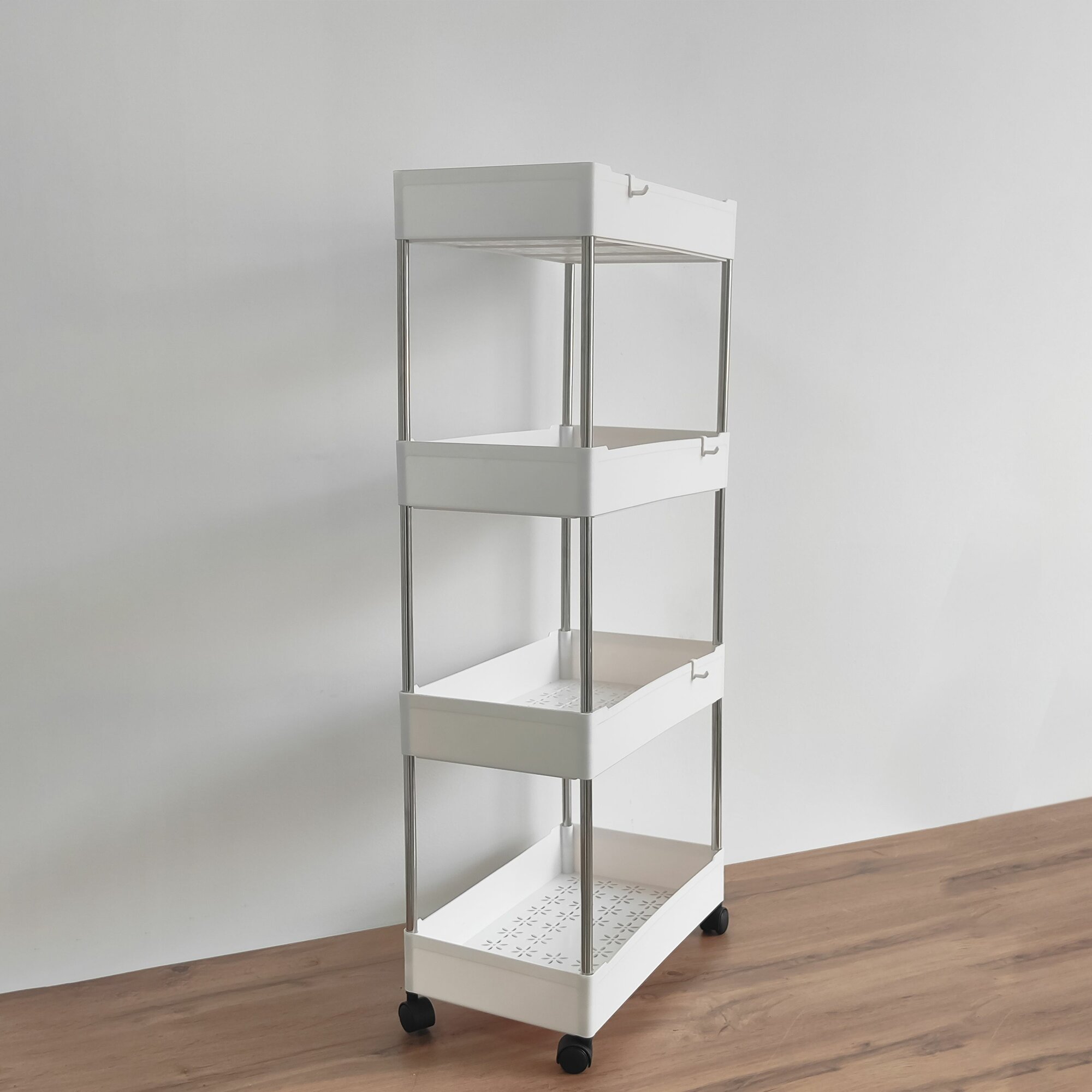 Купить Этажерка пластиковая 4-х ярусная на колесах, белая, Baizheng