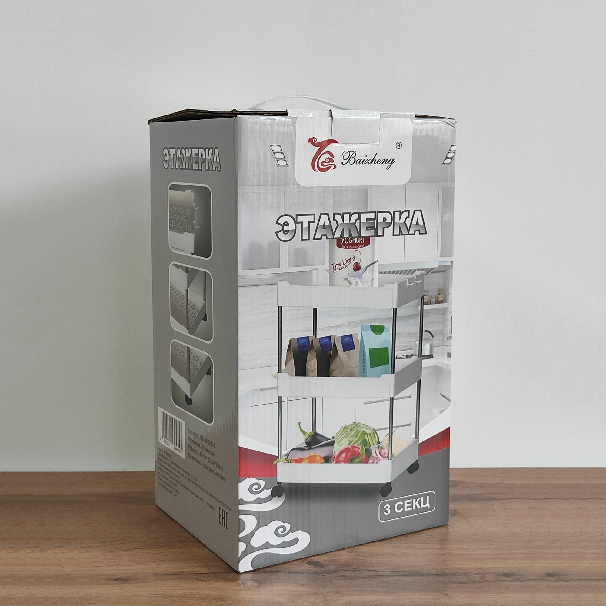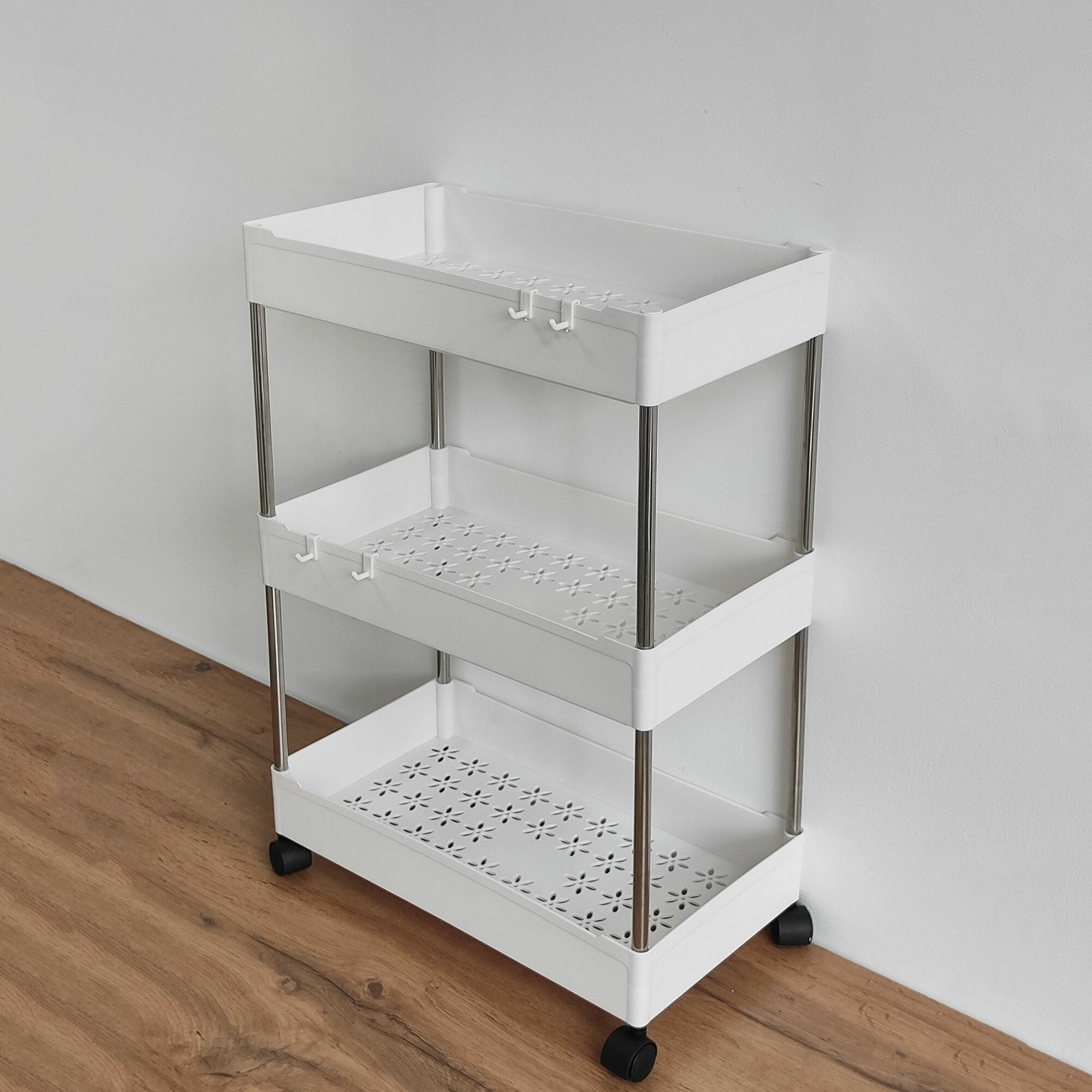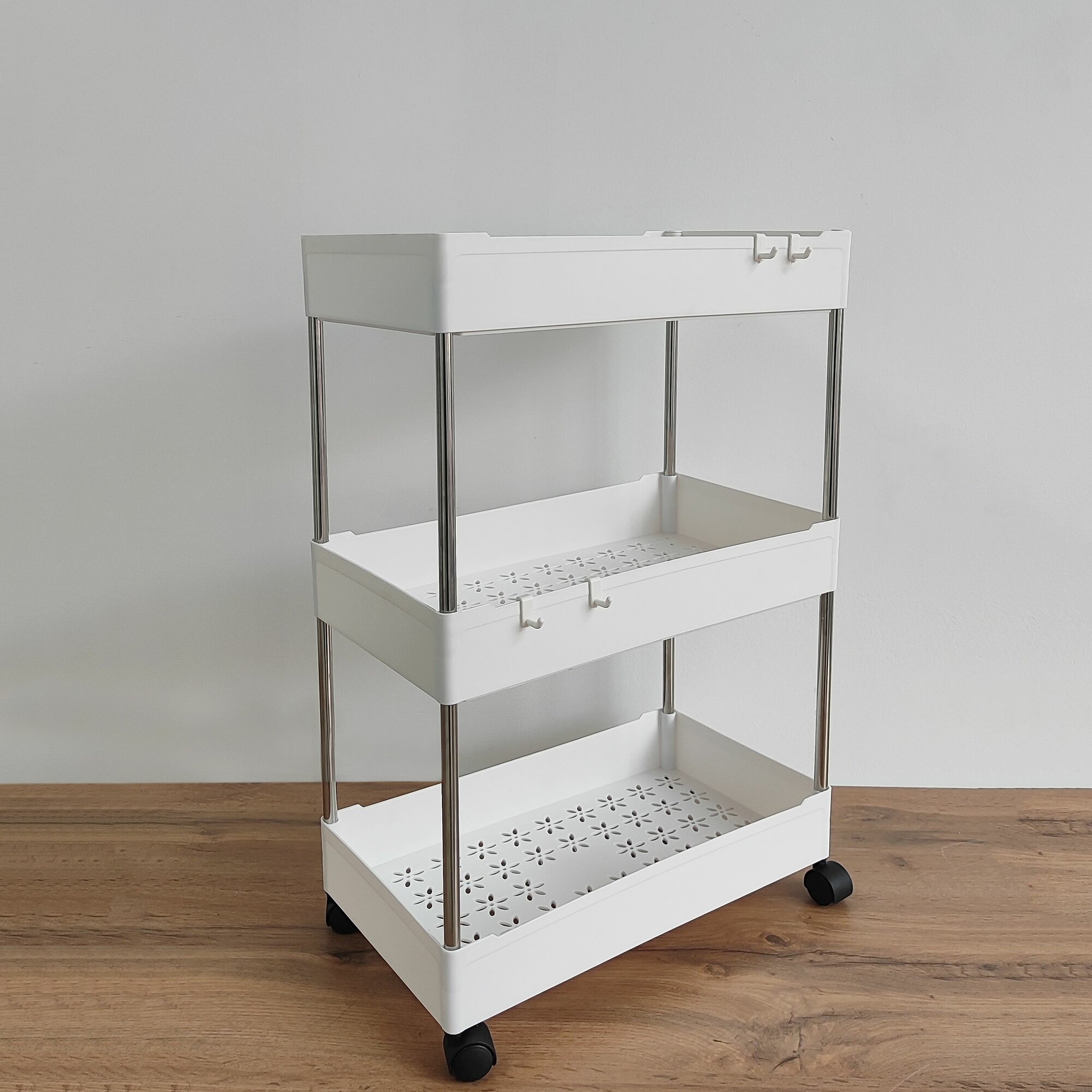 Купить Этажерка для дома и офиса пластиковая 3-х ярусная на колесах, цвет белый